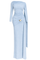 BELİ AKSESUARLI OMZU ŞAL DETAY MAKSİ BOY ELBİSE MAVİ