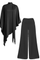 DİK YAKA ŞAL DETAY SATEN TAKIM SİYAH