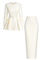 YAKASI TAŞ İŞLEMELİ KEMER DETAY SATEN TAKIM EKRU