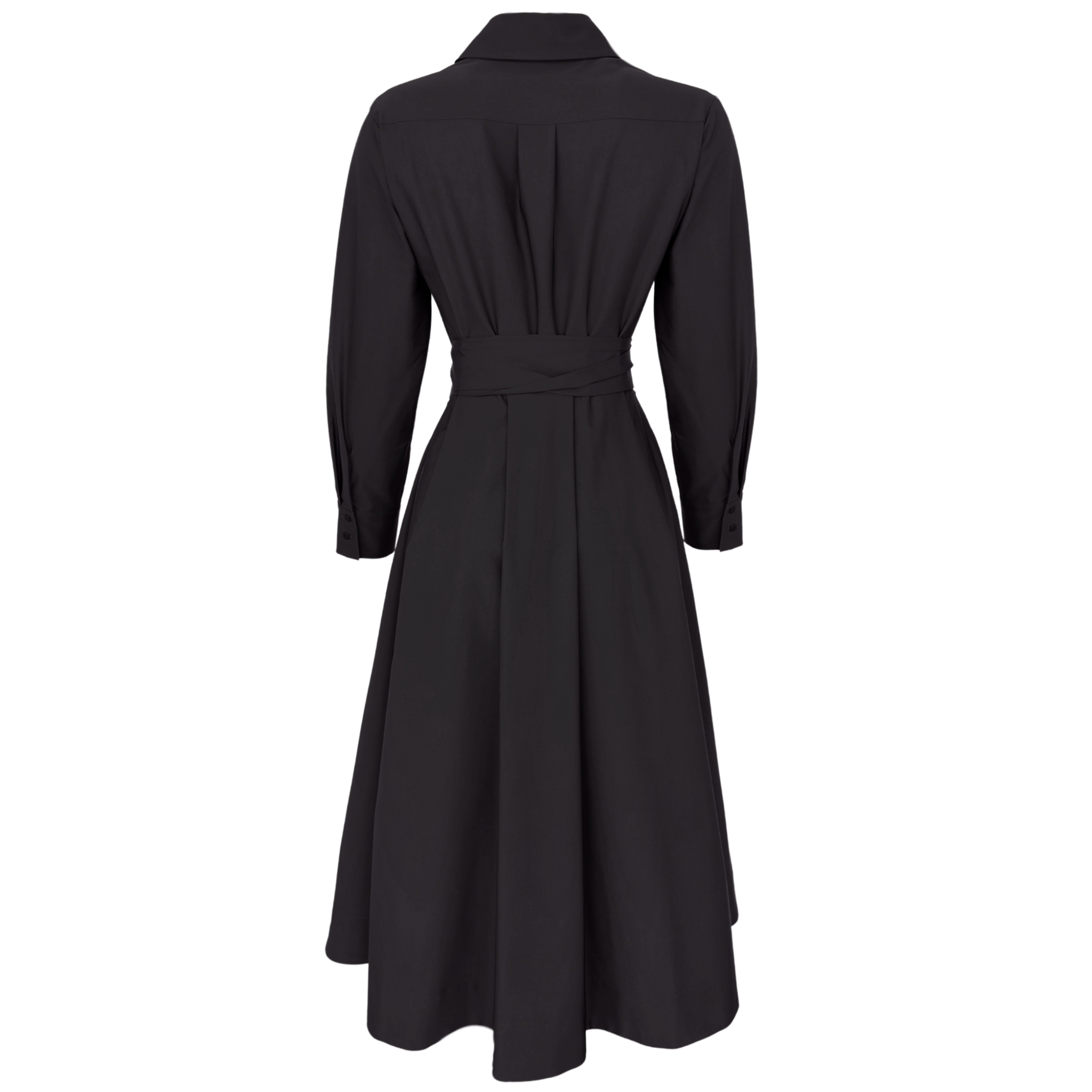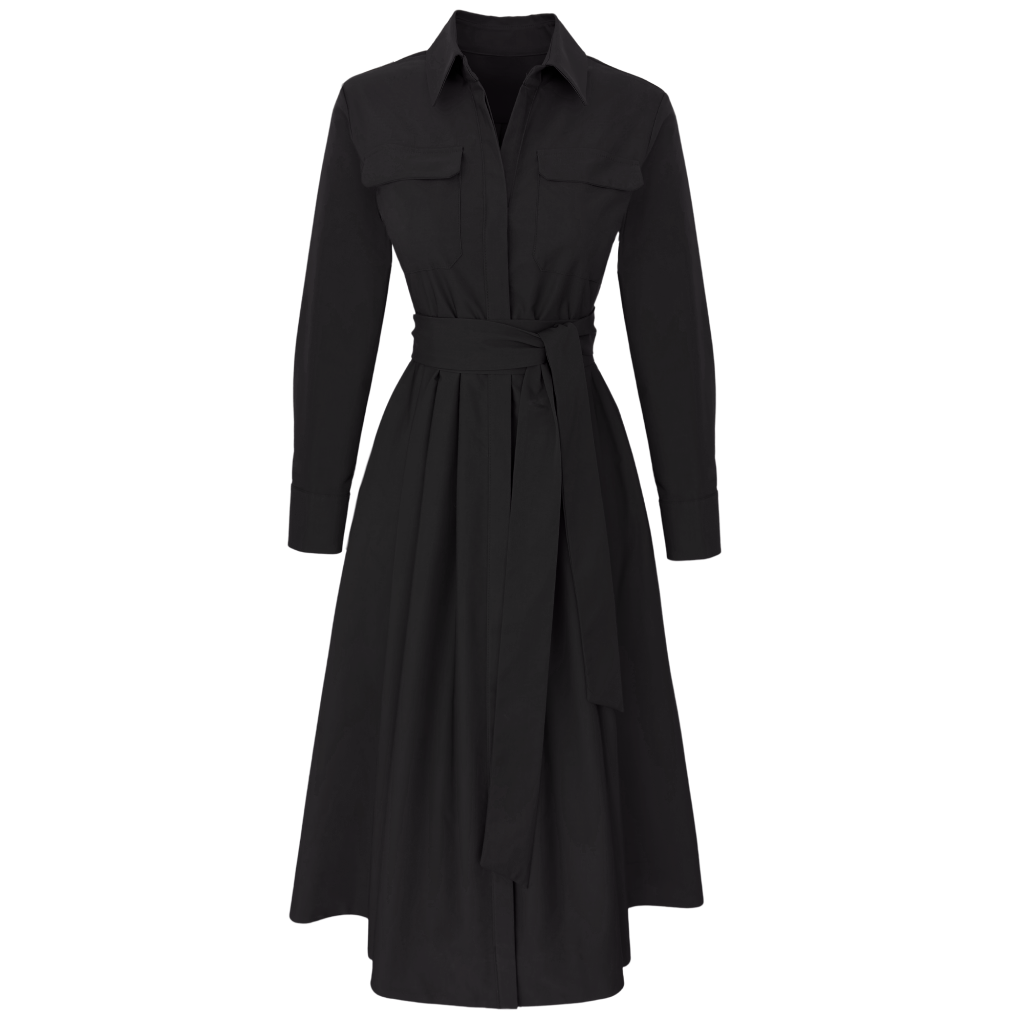 BELİ KUŞAKLI MAKSİ BOY GÖMLEK ELBİSE SİYAH