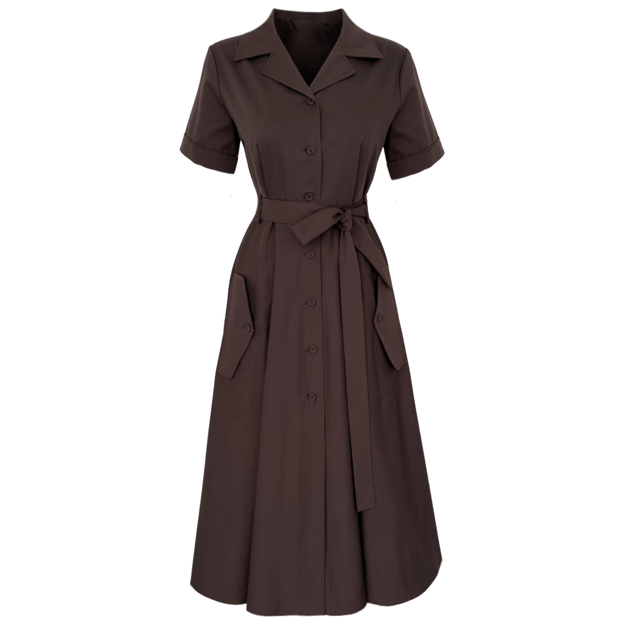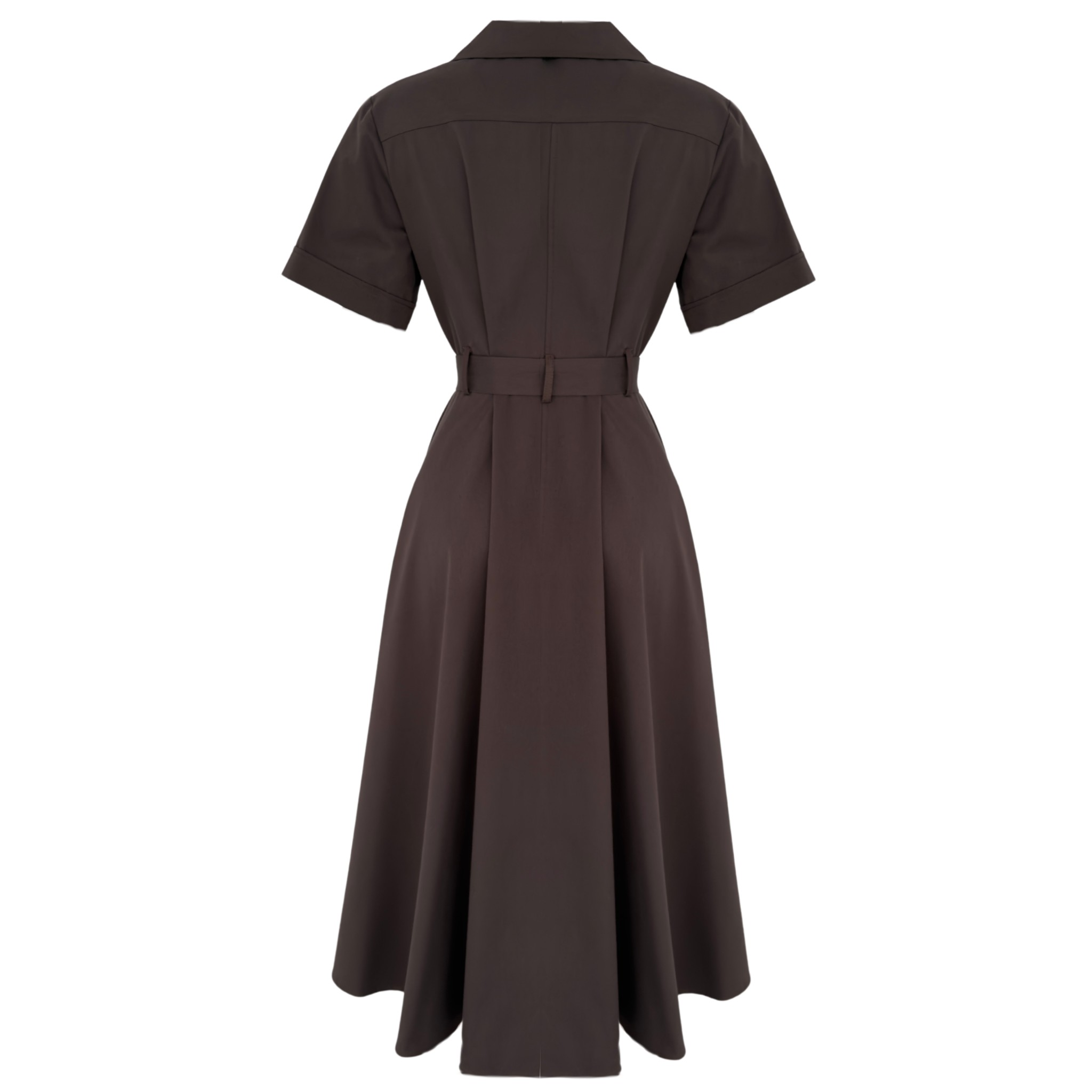 CEKET YAKA CEP DETAY COTTON ELBİSE KOYU KAHVE