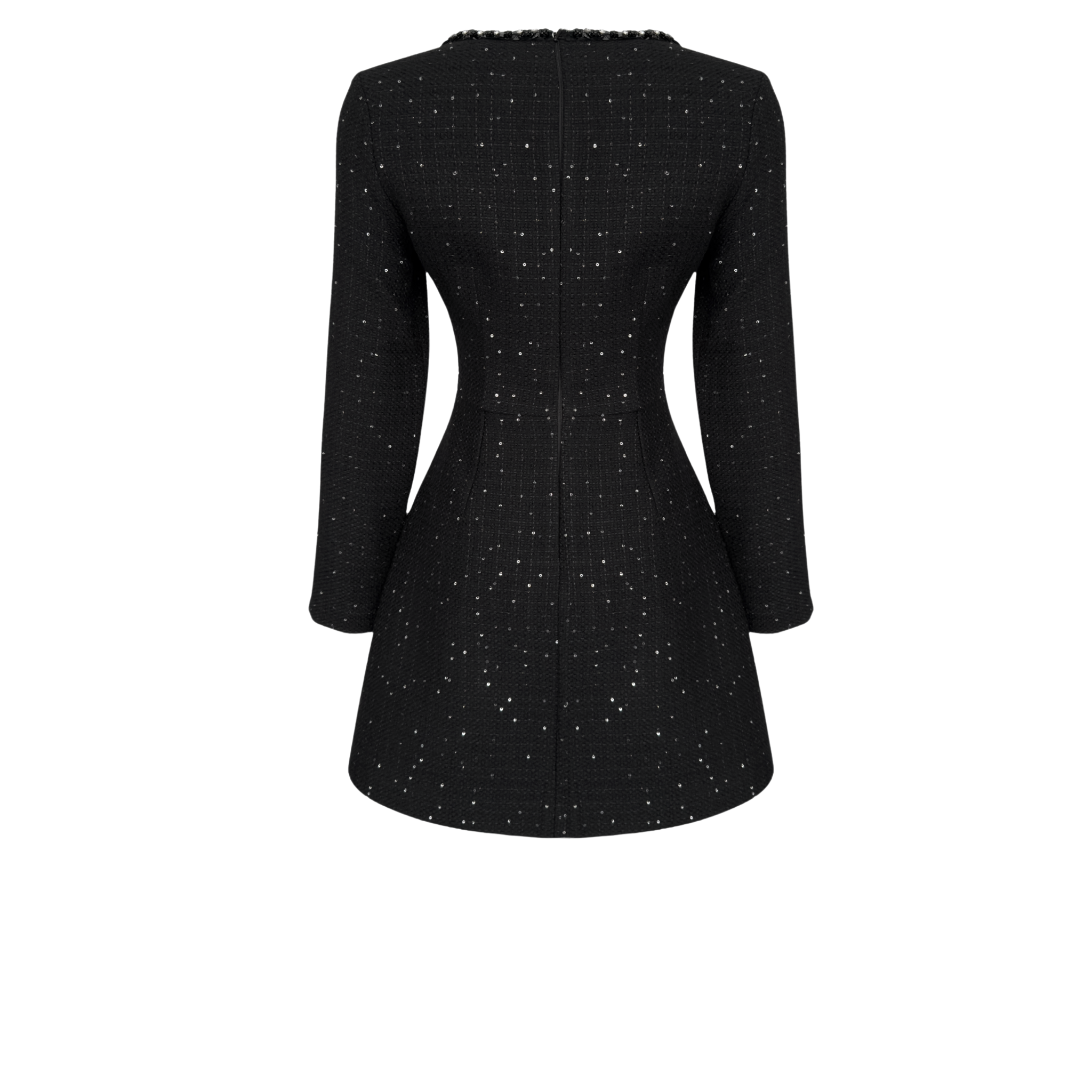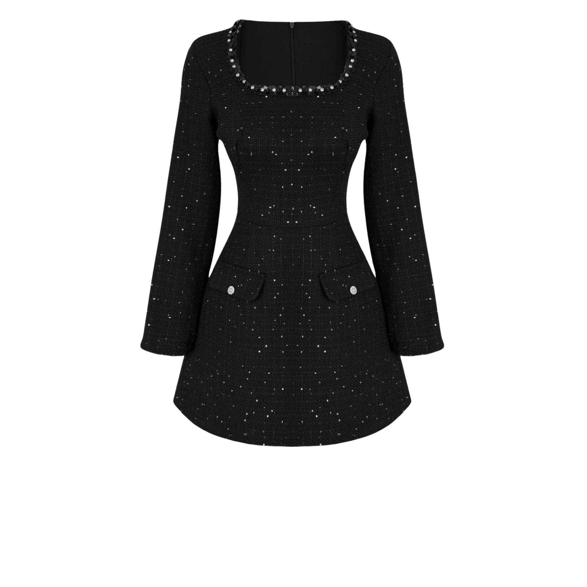 UZUN KOL YAKASI İŞLEME DETAY TÜVİT ELBİSE SİYAH