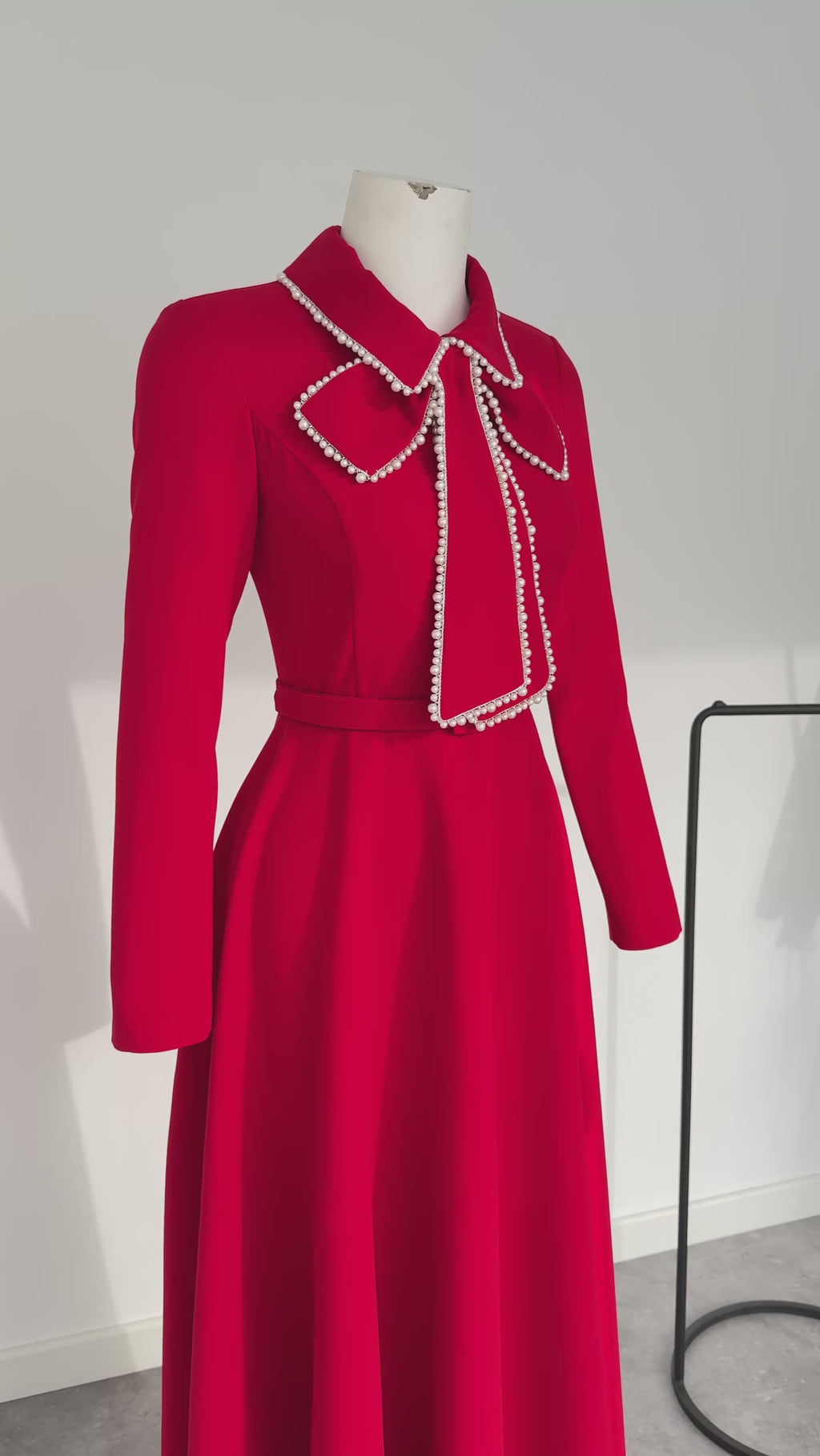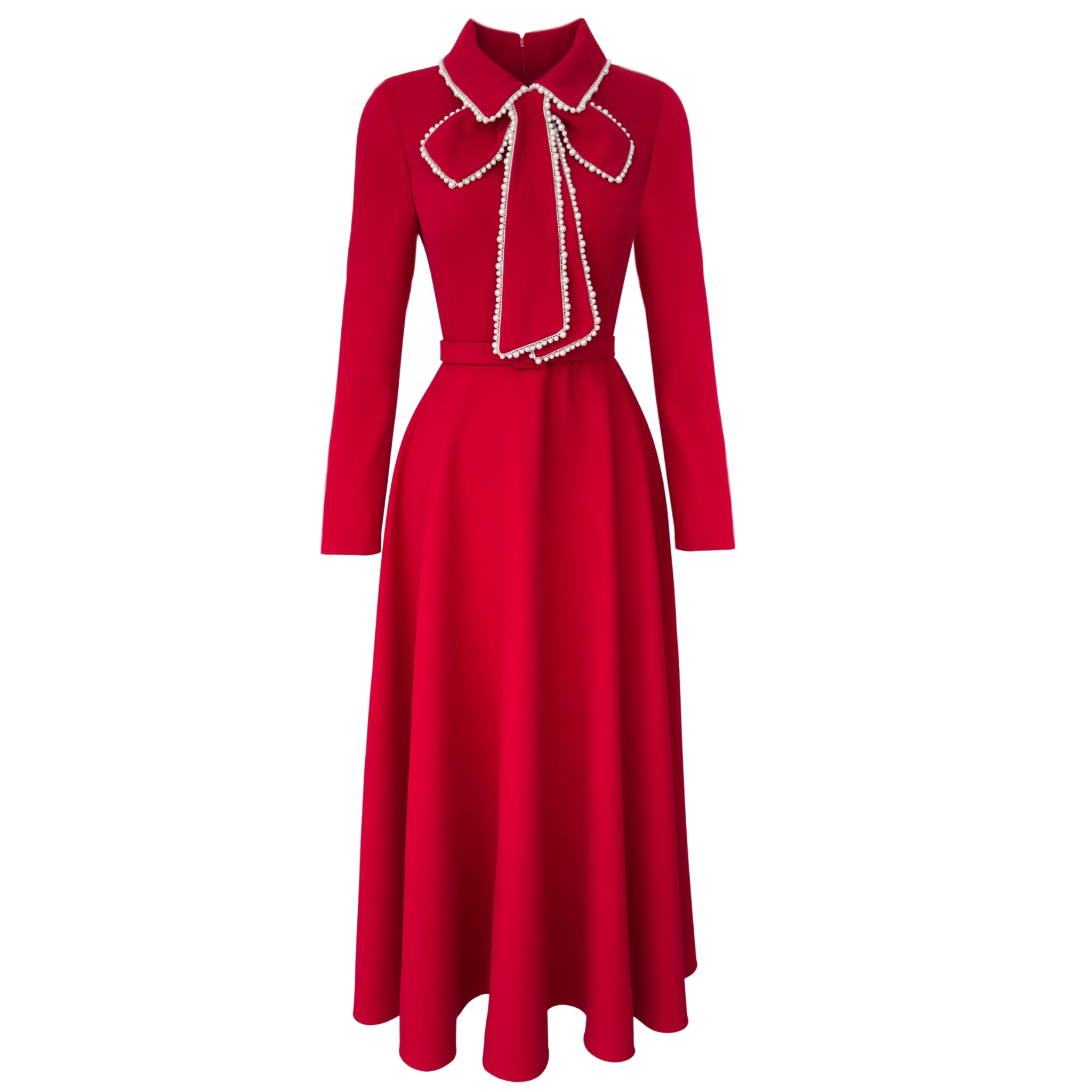 YAKASI İNCİ İŞLEMELİ ELBİSE KIRMIZI