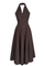 ASİMETRİK YAKA SIRT DEKOLTELİ COTTON ELBİSE KAHVE