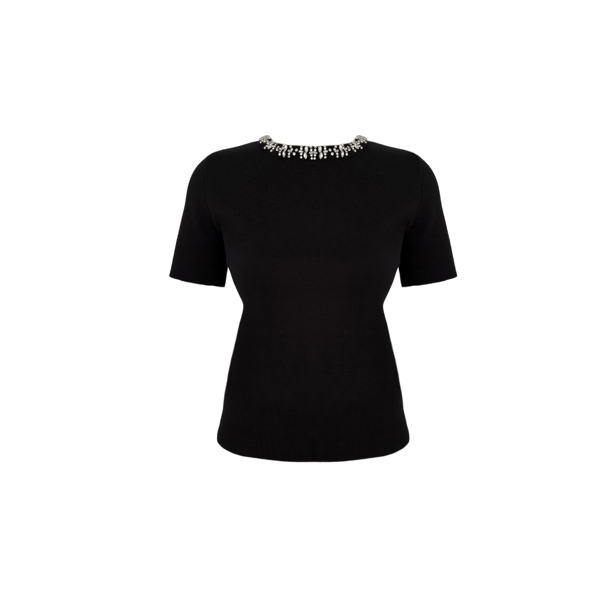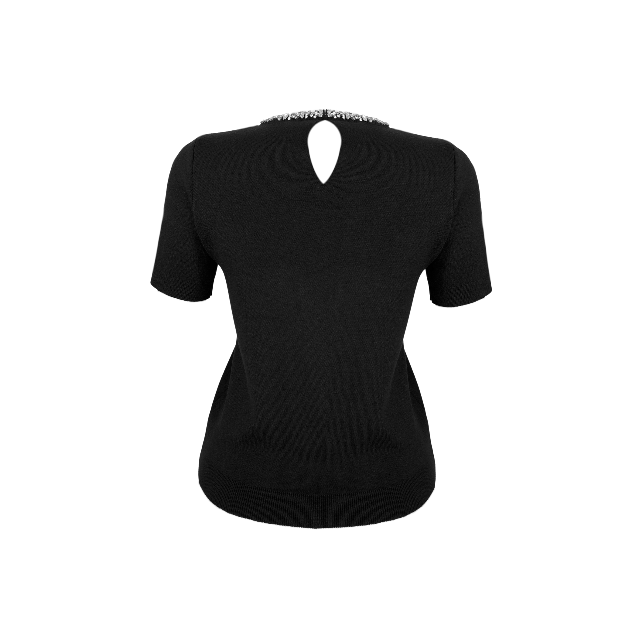 YAKASI TAŞ İŞLEMELİ KISA KOL TRİKO SİYAH