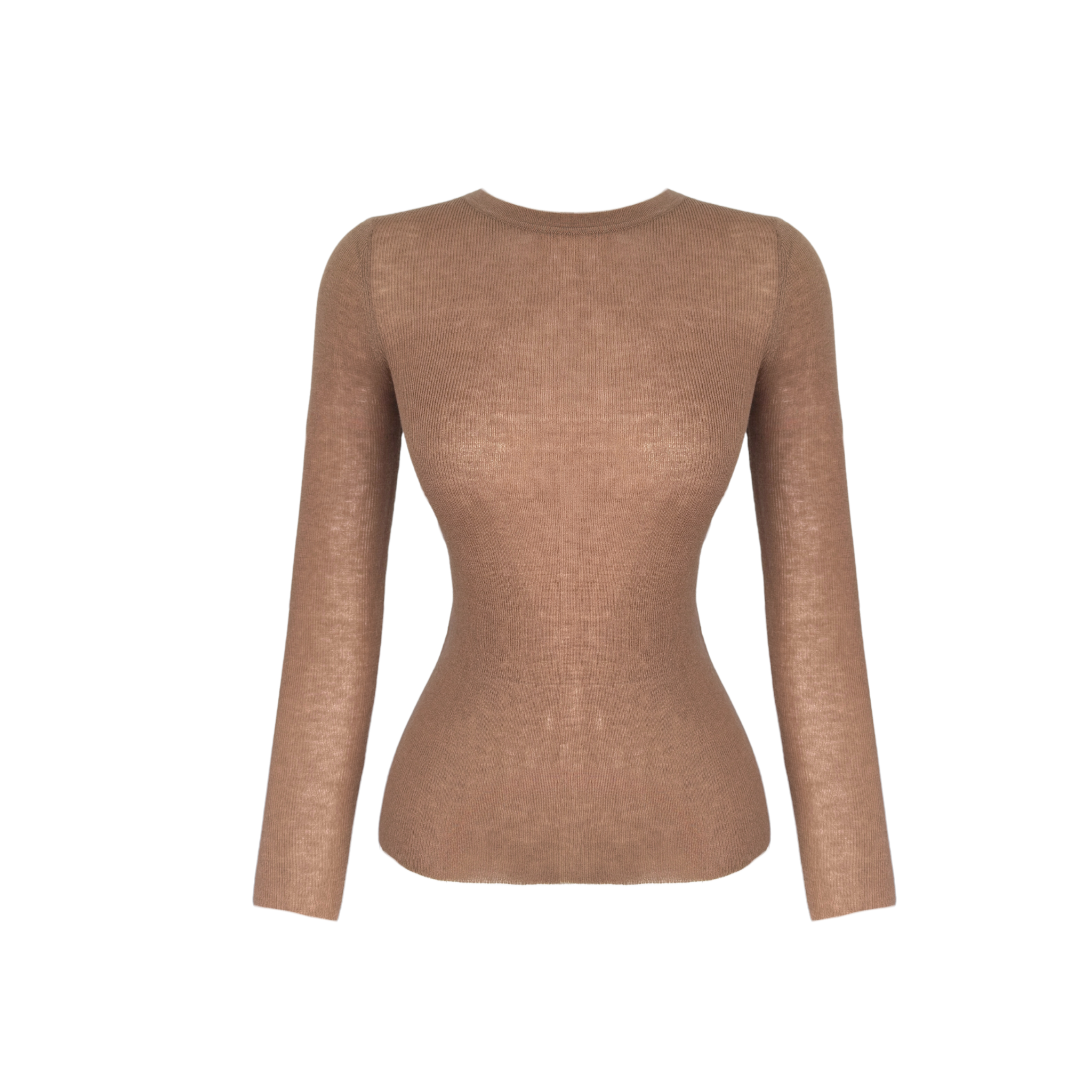 YÜN KARIŞIMLI YARI TRANSPARAN TRİKO BODY CAMEL