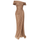 ASİMETRİK YAKA DRAPELİ UZUN ABİYE ELBİSE KOYU GOLD