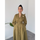 BROŞ DETAYLI YARASA KOL MAKSİ ELBİSE HAKİ
