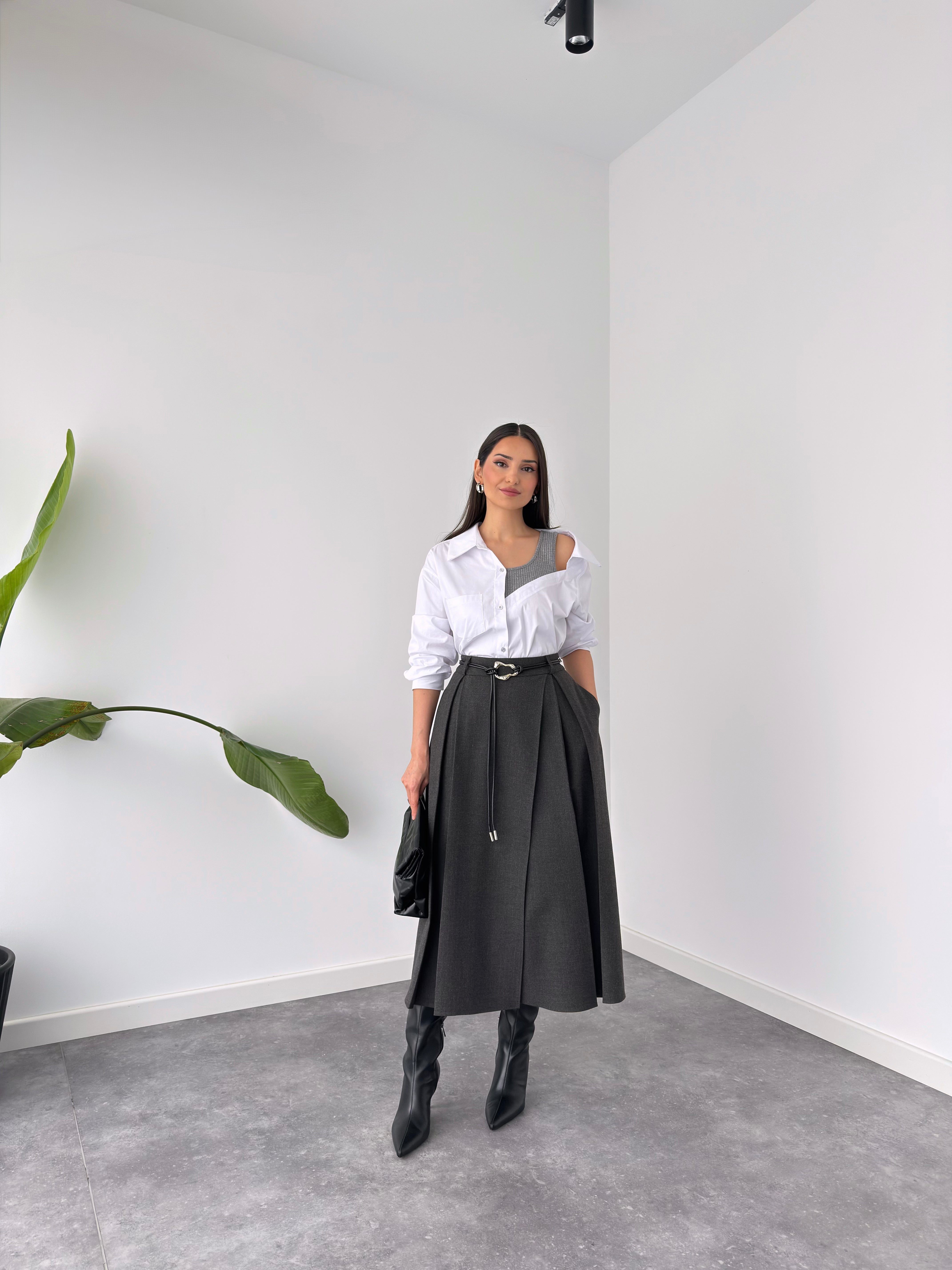 PİLE DETAY ÖNDEN YIRTMAÇLI KLOŞ ETEK ANTRASİT