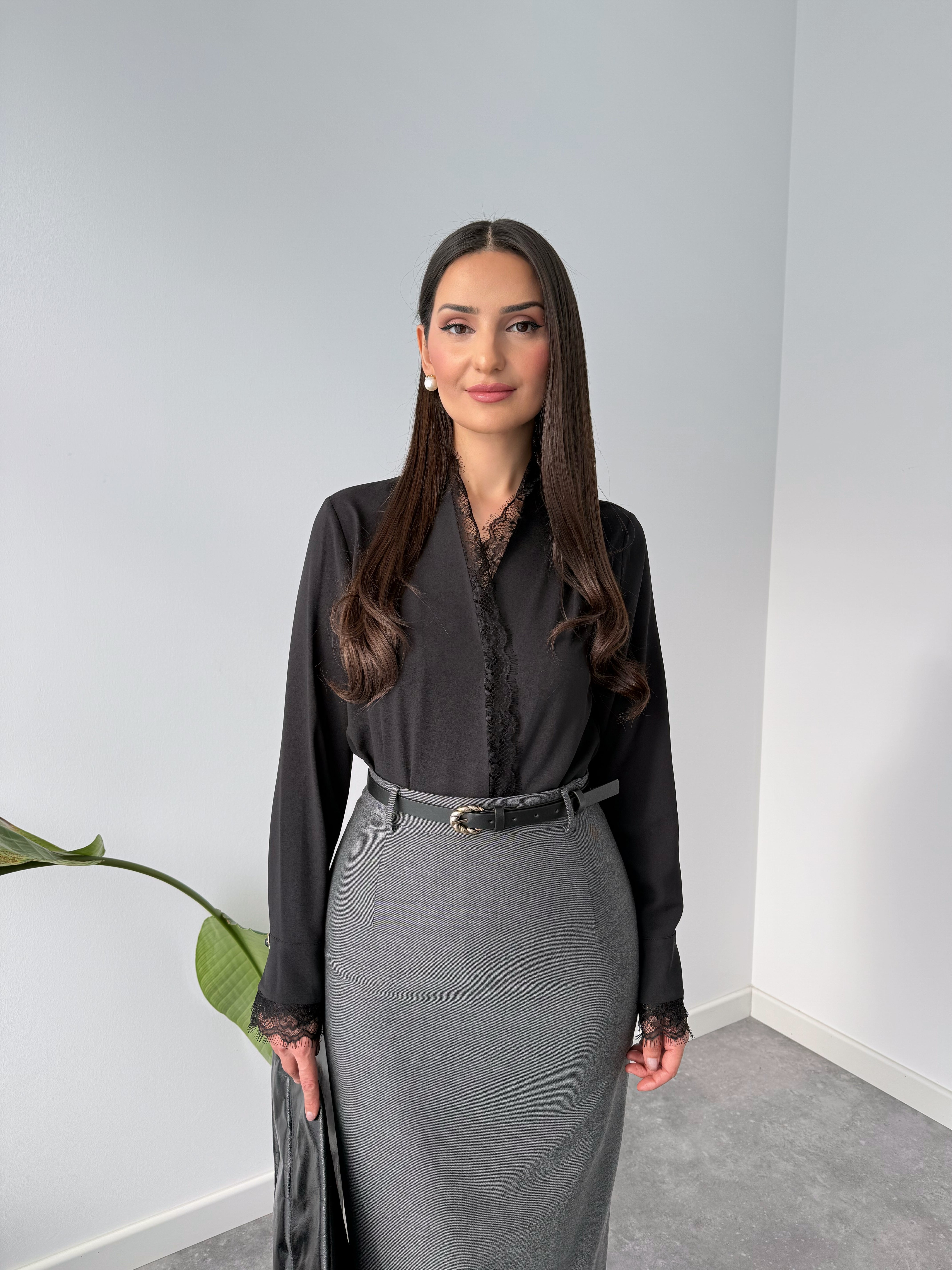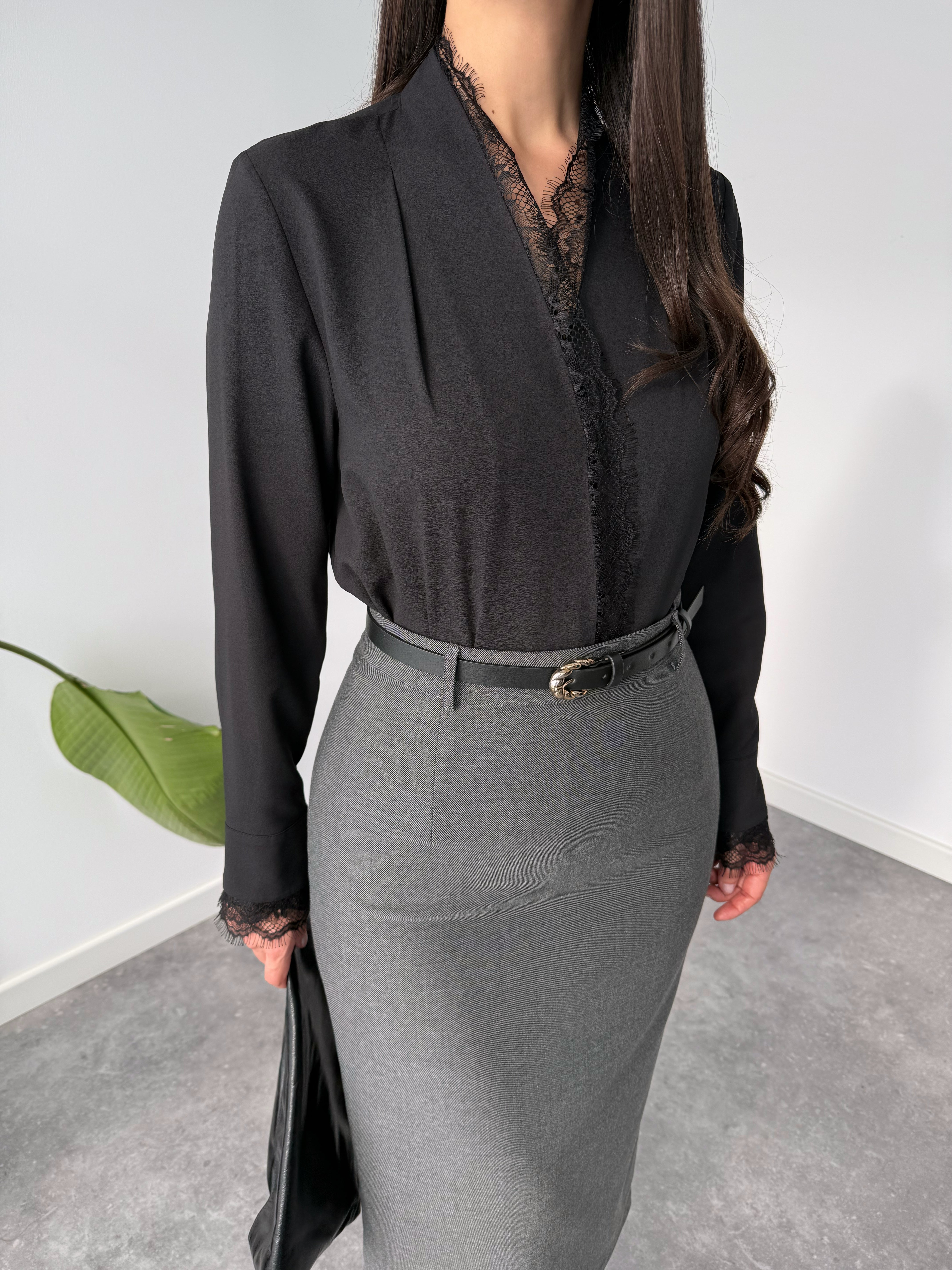 KRUVAZE KAPAMA DANTEL DETAY BLUZ SİYAH