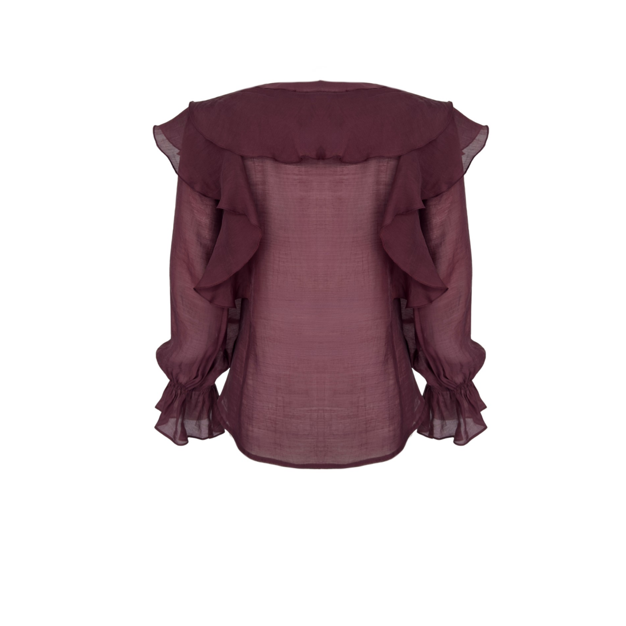 VOLANLI V YAKA YARI TRANSPARAN BLUZ BORDO