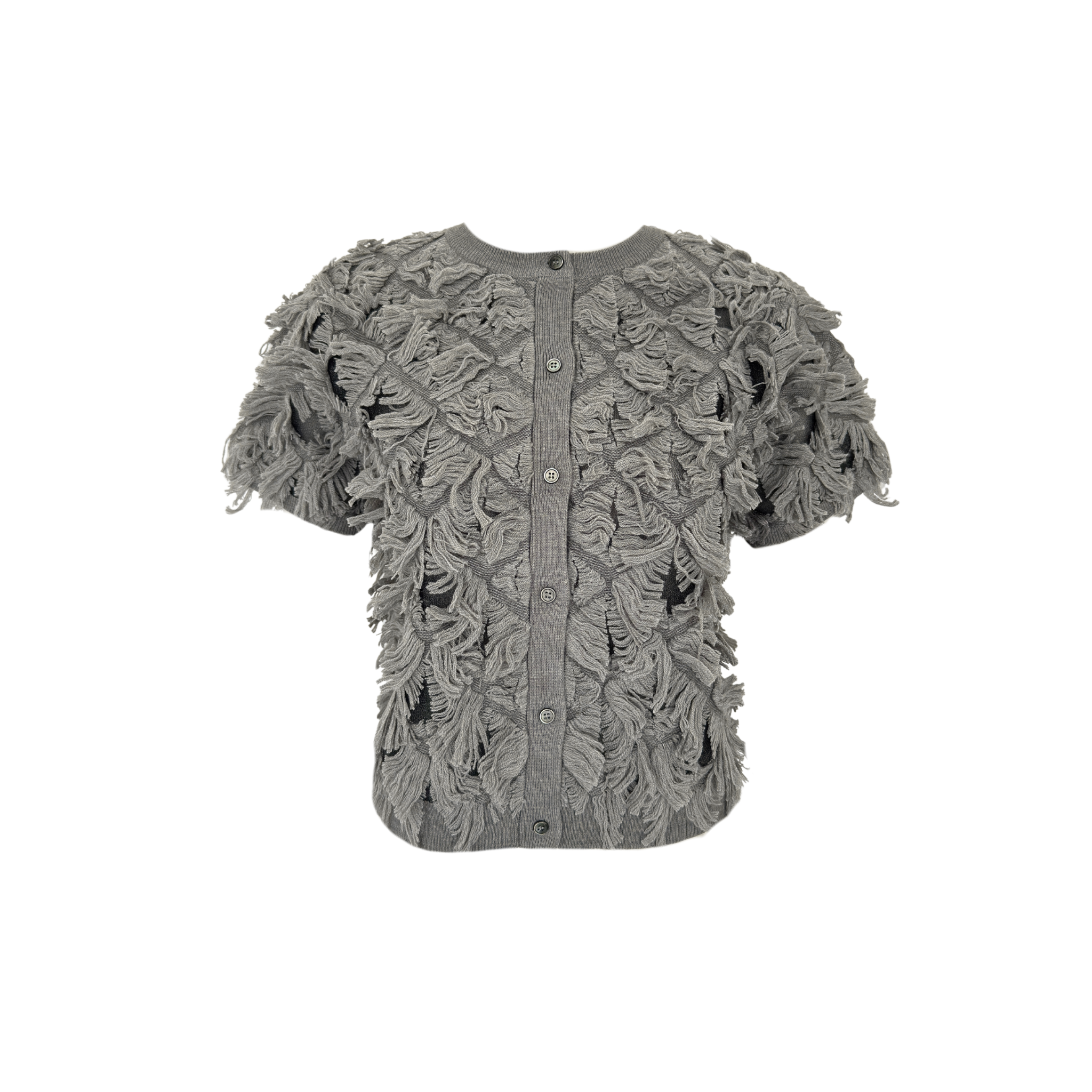 PÜSKÜL DETAYLI KISA KOL YÜN KARIŞIMLI TRİKO CEKET GRİ
