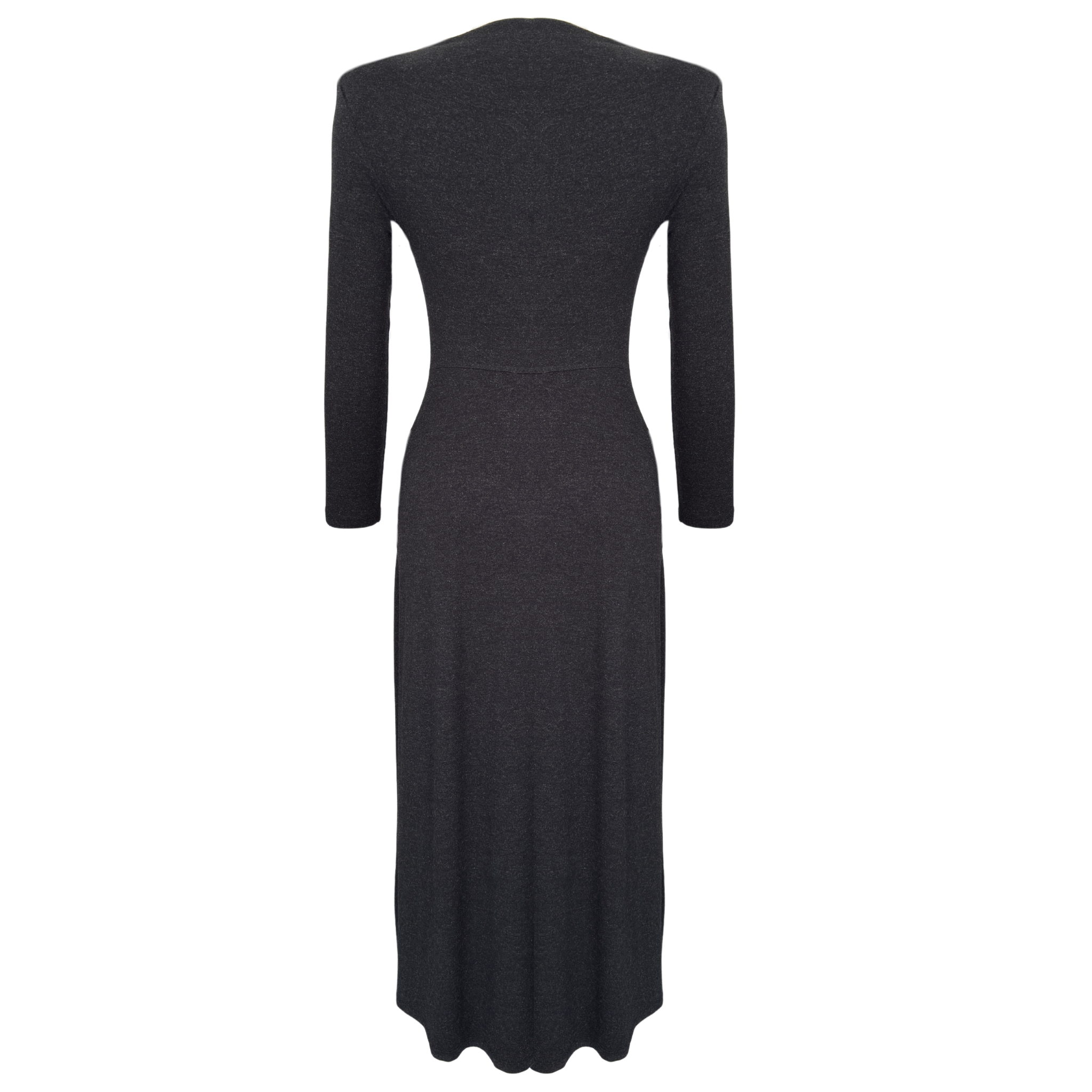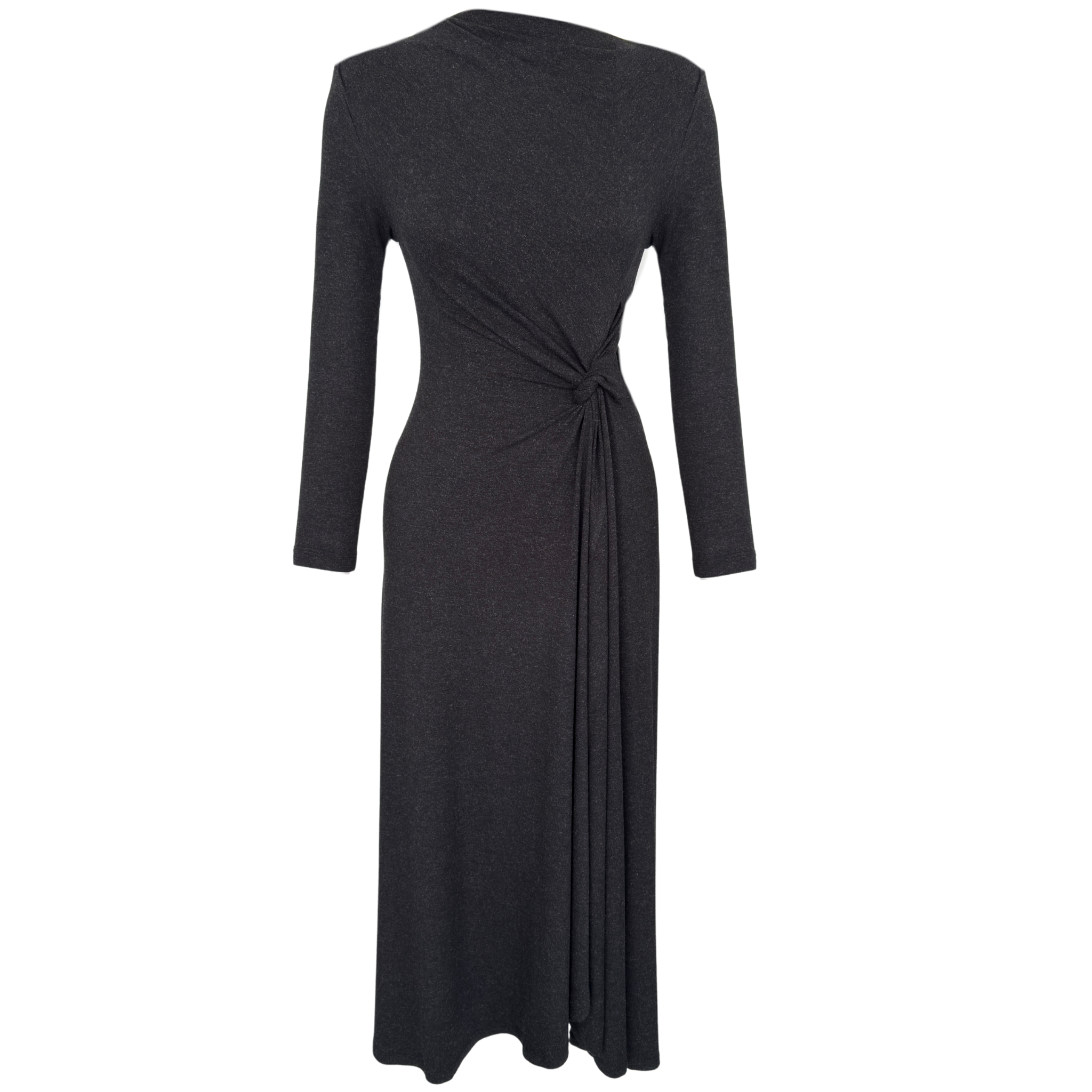 OMUZLARI VATKALI BELİ DÜĞÜM DETAY ELBİSE SİYAH