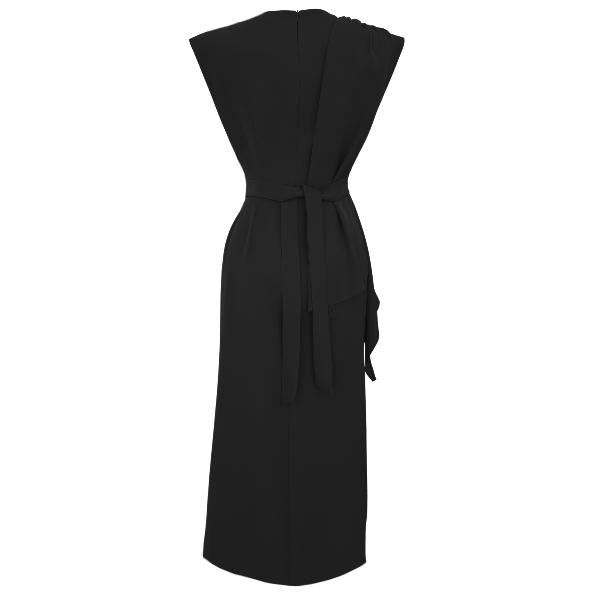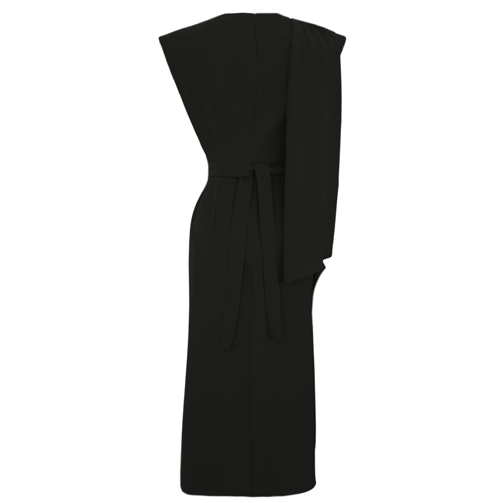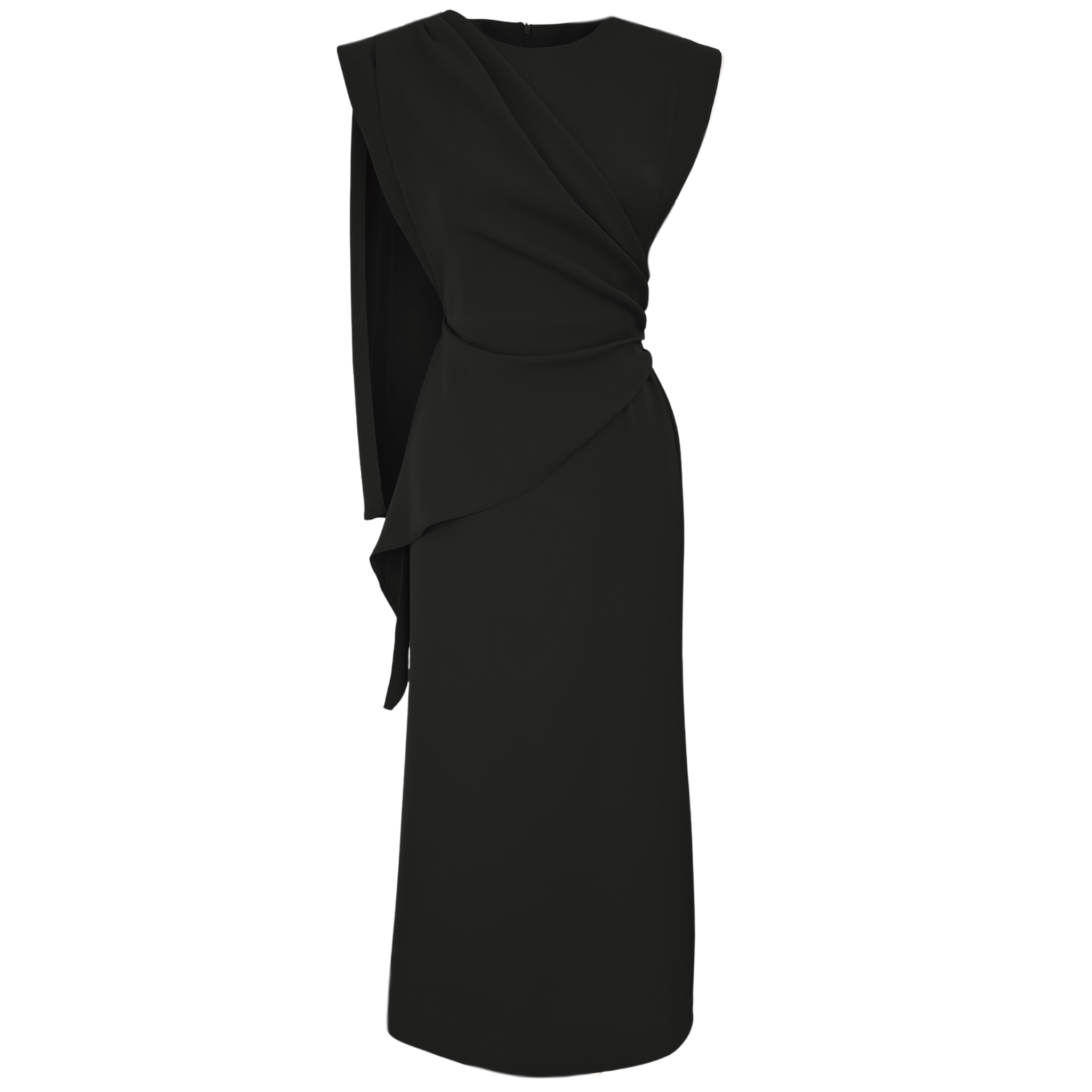 OMZU ŞAL DETAY DÖKÜMLÜ ELBİSE SİYAH