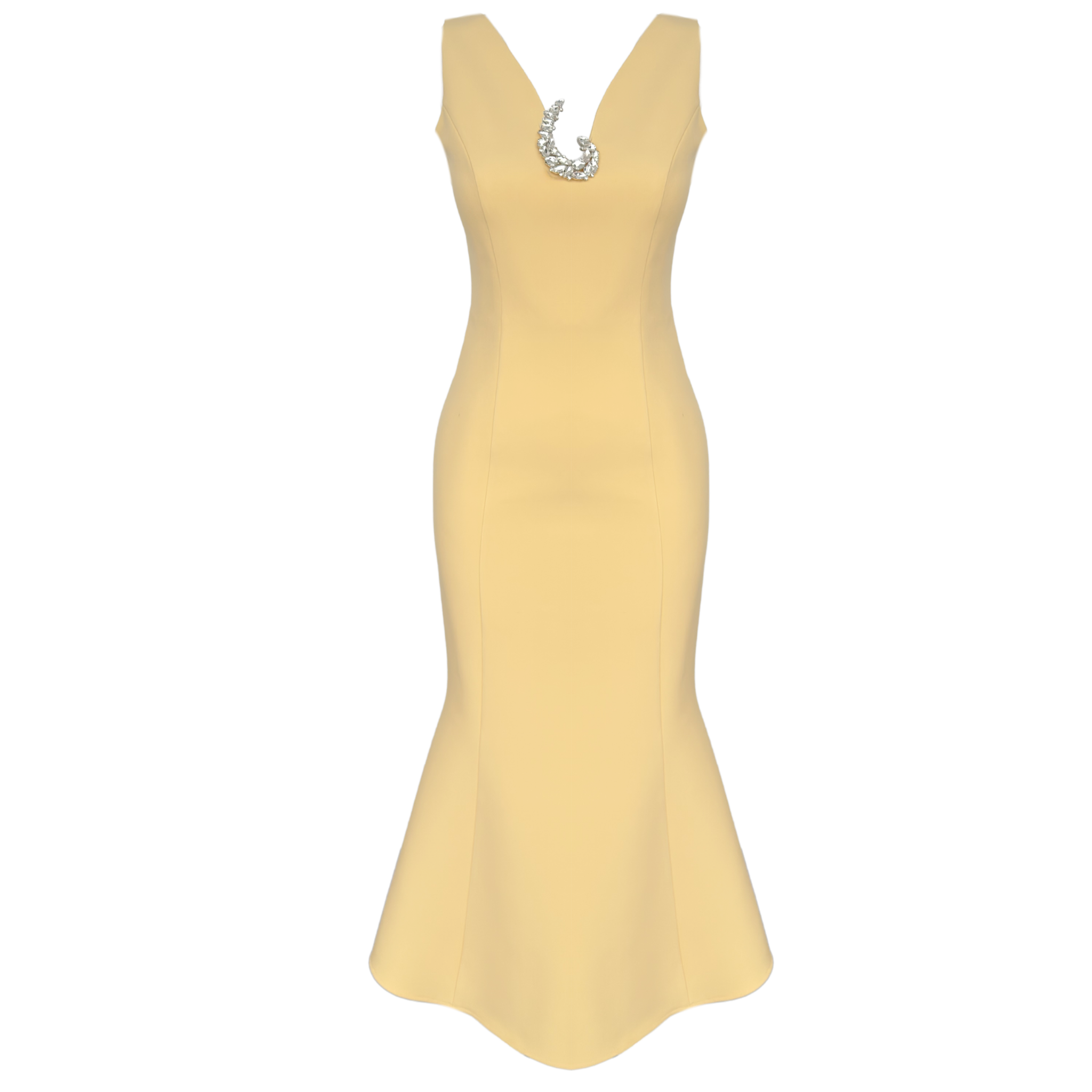 YAKASI AKSESUAR DETAY ETEĞİ VOLANLI ELBİSE SARI