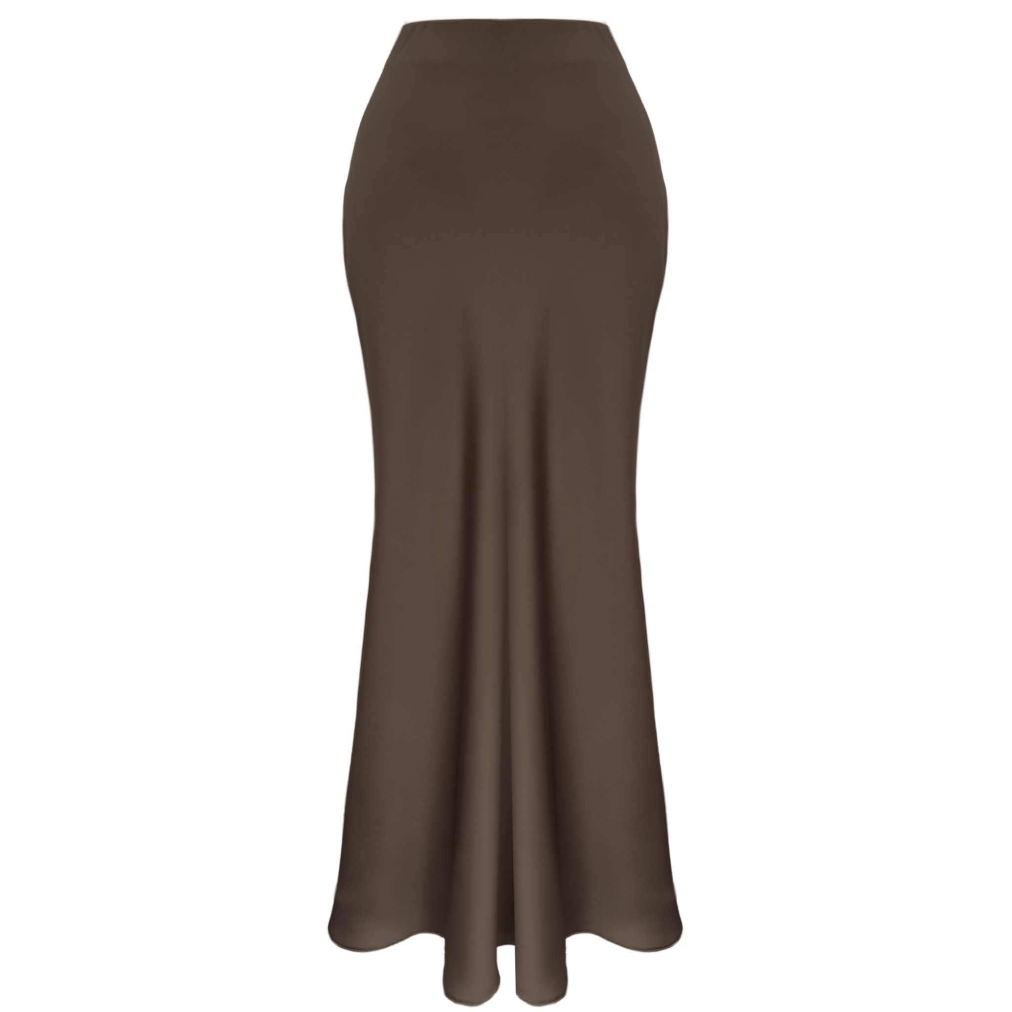BELİ LASTİKLİ MAKSİ BOY PAMUK SATEN ETEK KAHVE