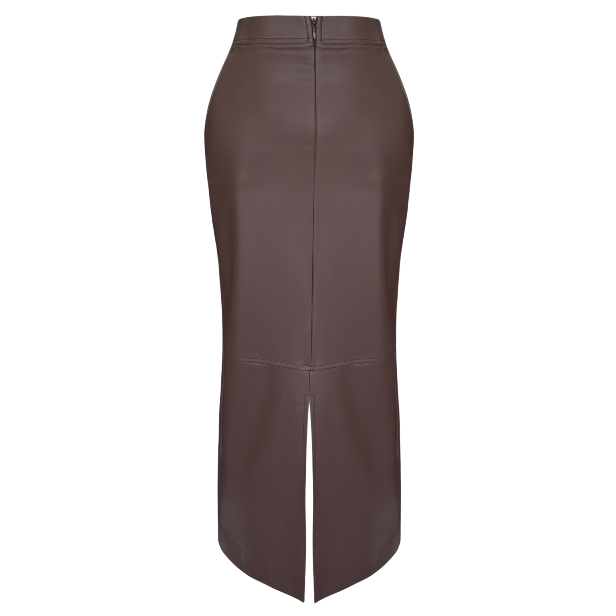 SUNİ DERİ MİDİ BOY KALEM ETEK KAHVE