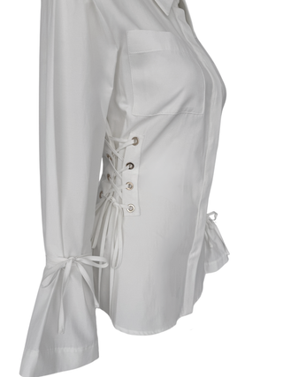 YANLARDAN KORSE DETAY VATKALI GÖMLEK EKRU