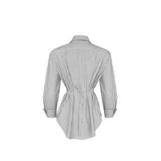 KRAVAT DETAY ÇİZGİLİ COTTON GÖMLEK