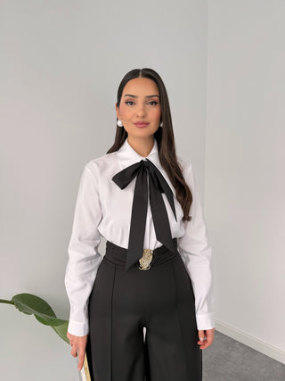 KONTRAST FULAR DETAYLI TASARIM GÖMLEK BEYAZ