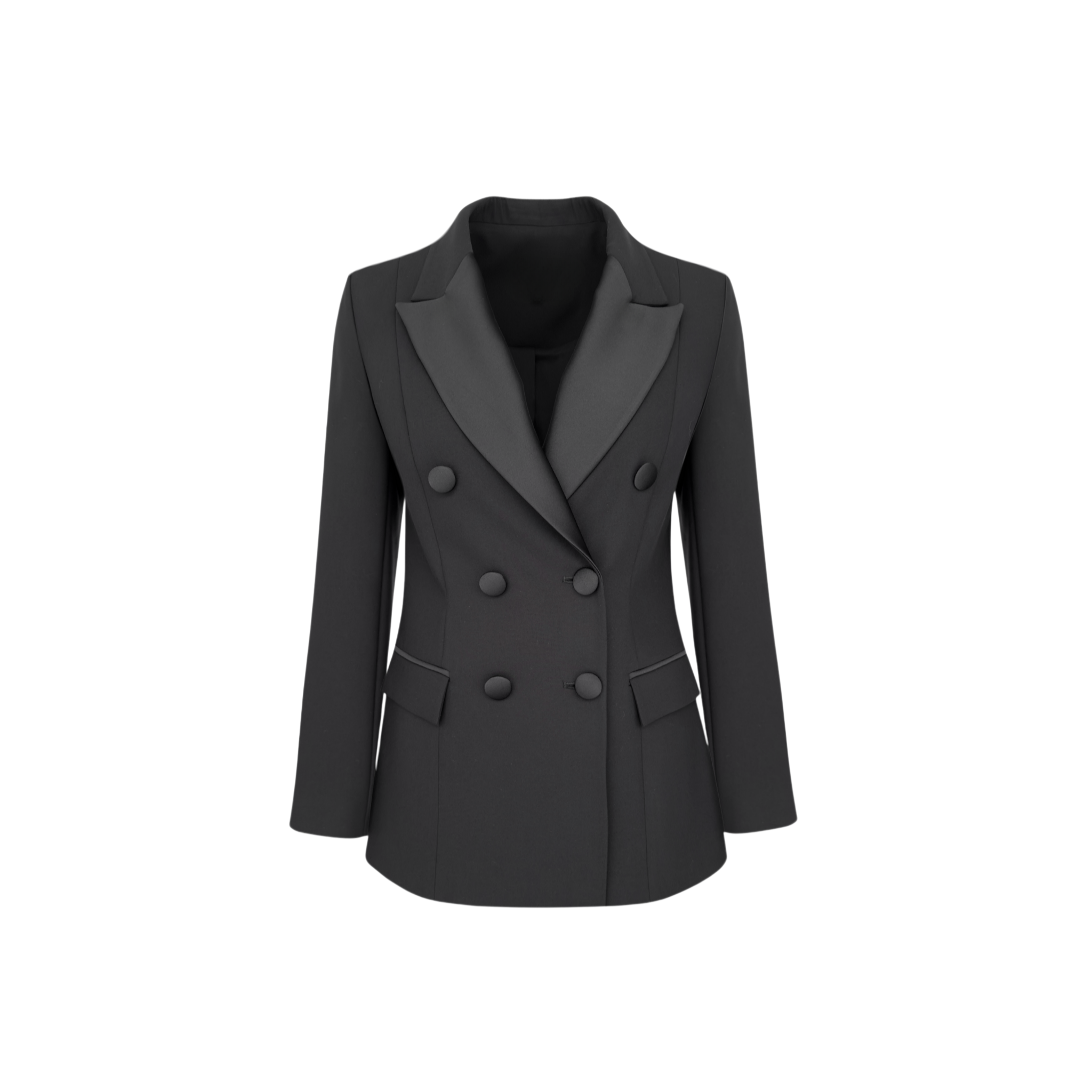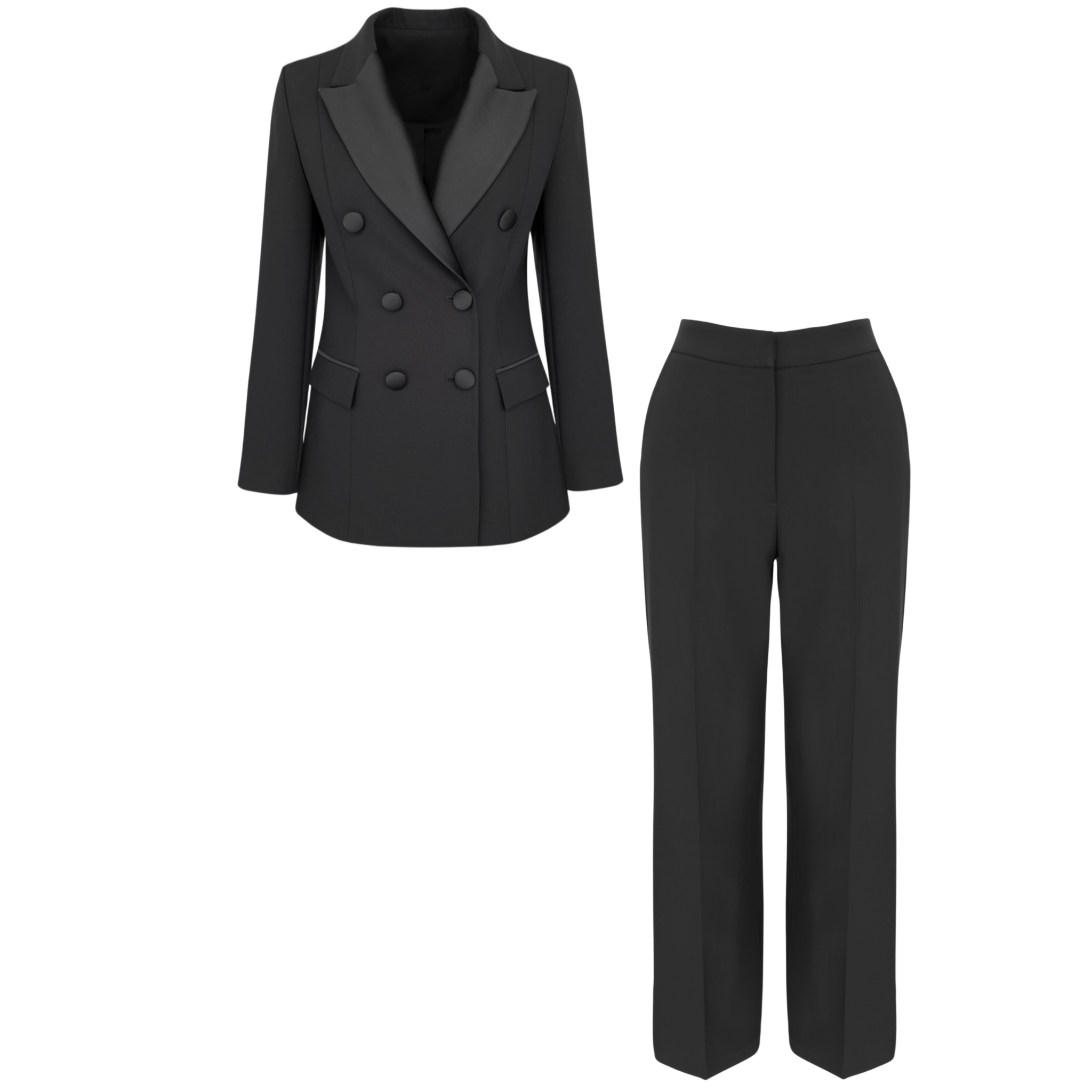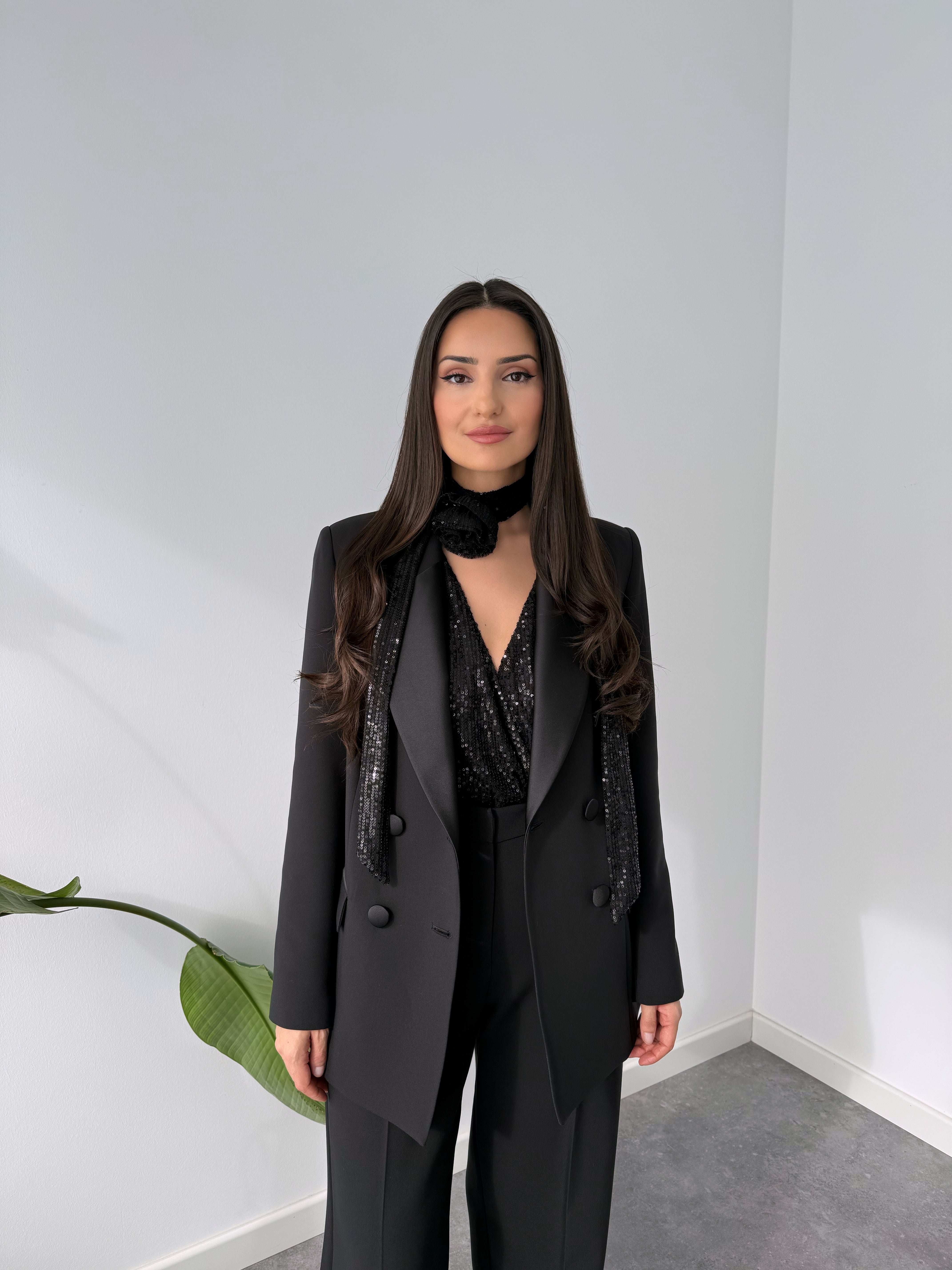 SATEN YAKA DETAYLI TAKIM SİYAH