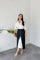 KONTRAST DİKİŞLİ ASİMETRİK KESİM MİDİ BOY ETEK