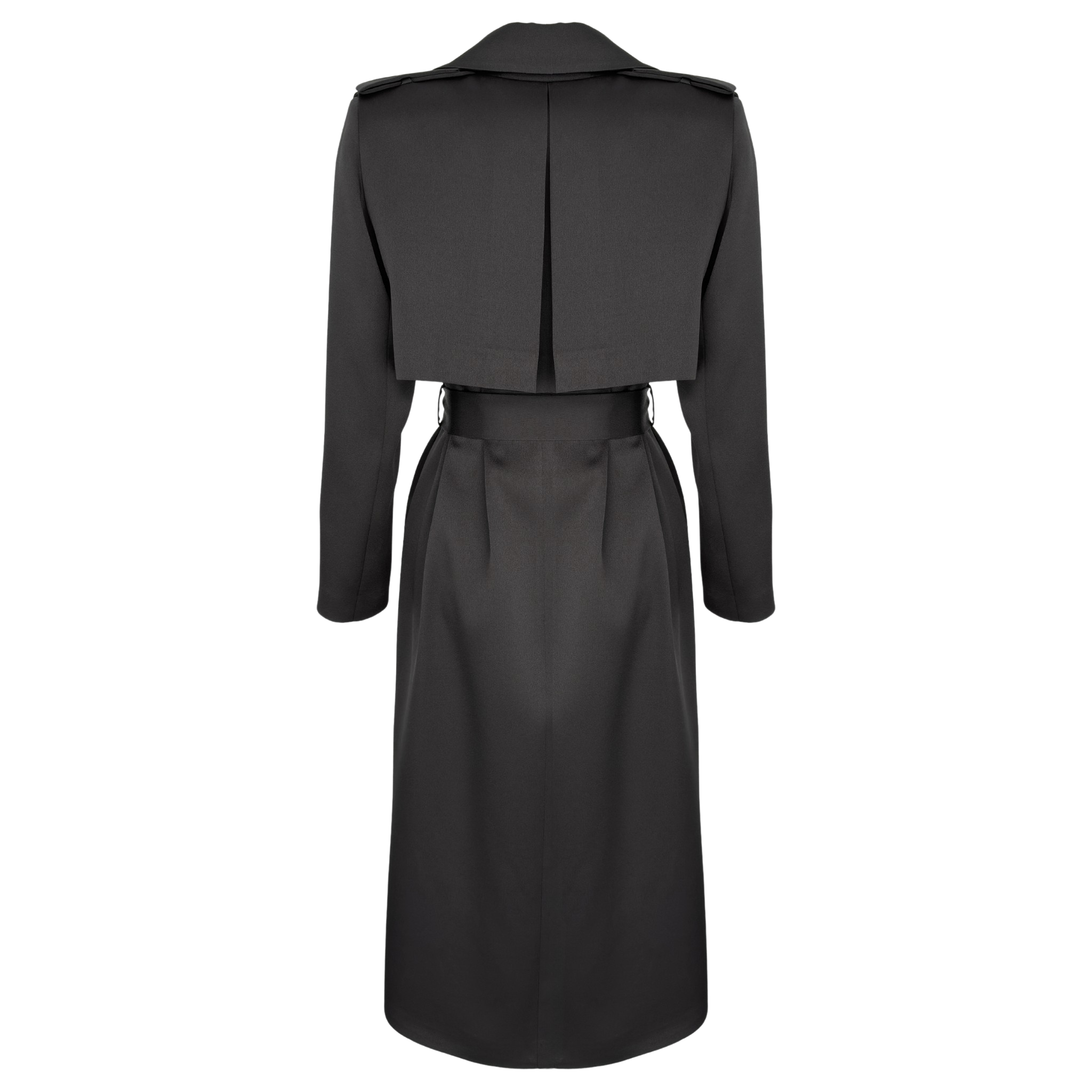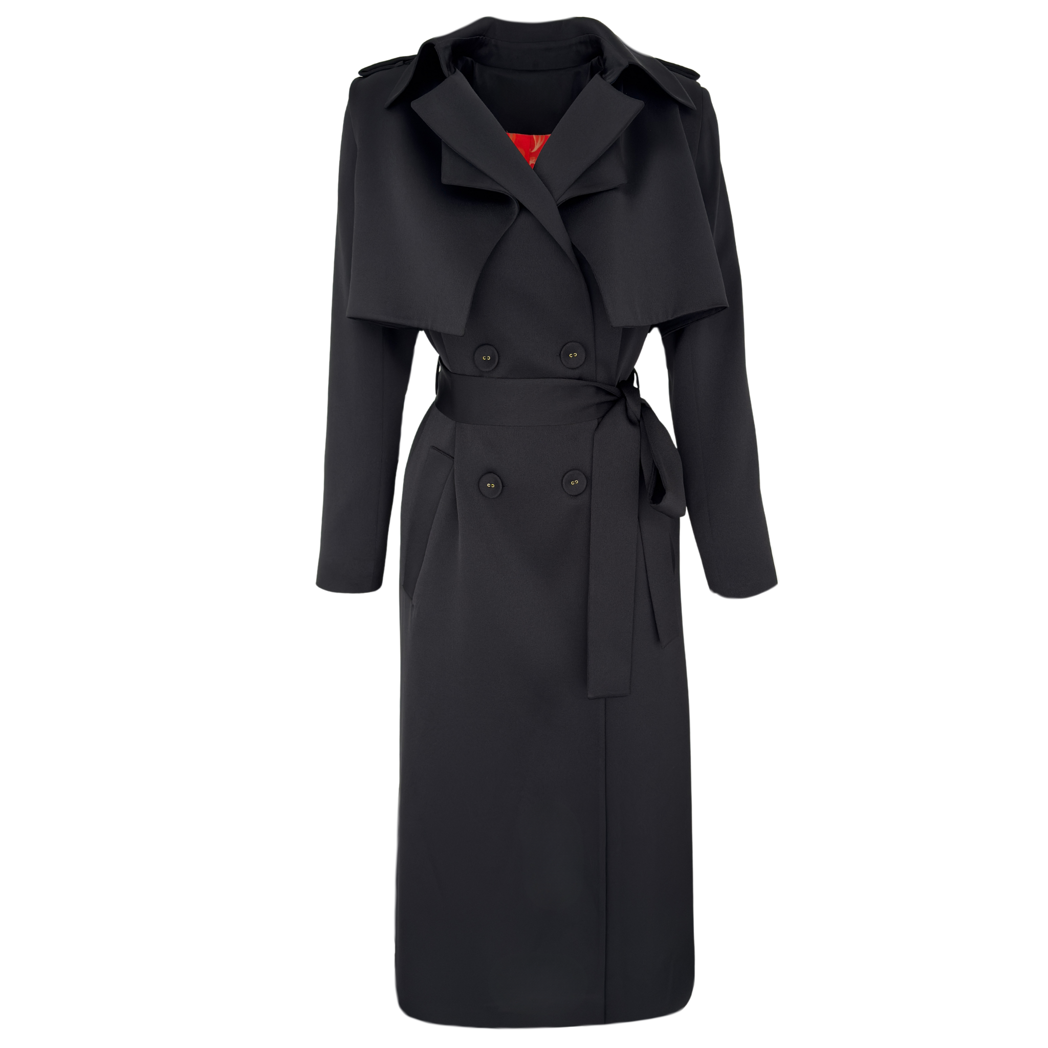 BELİ KUŞAKLI PAMUK SATEN TRENÇKOT SİYAH
