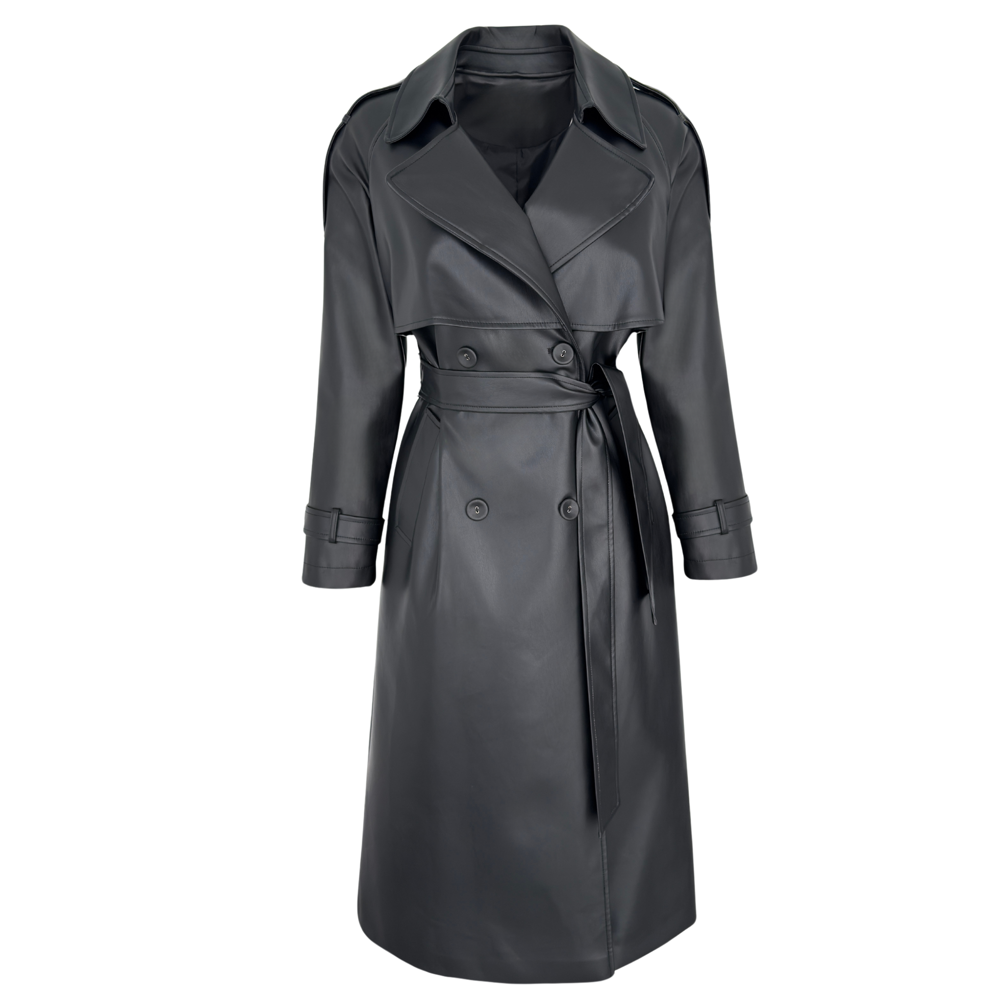 KRUVAZE MODEL SUNİ DERİ TRENÇKOT SİYAH