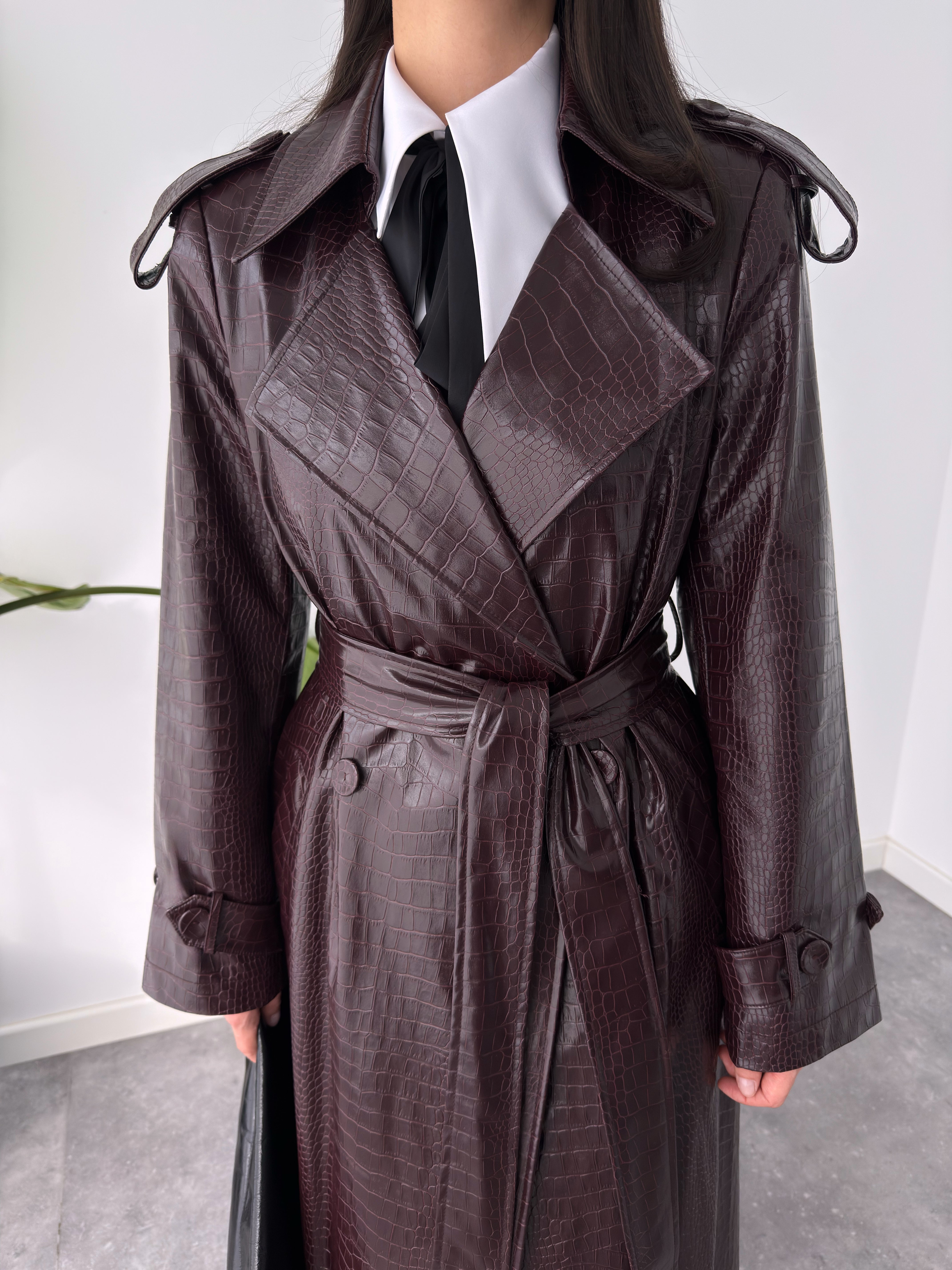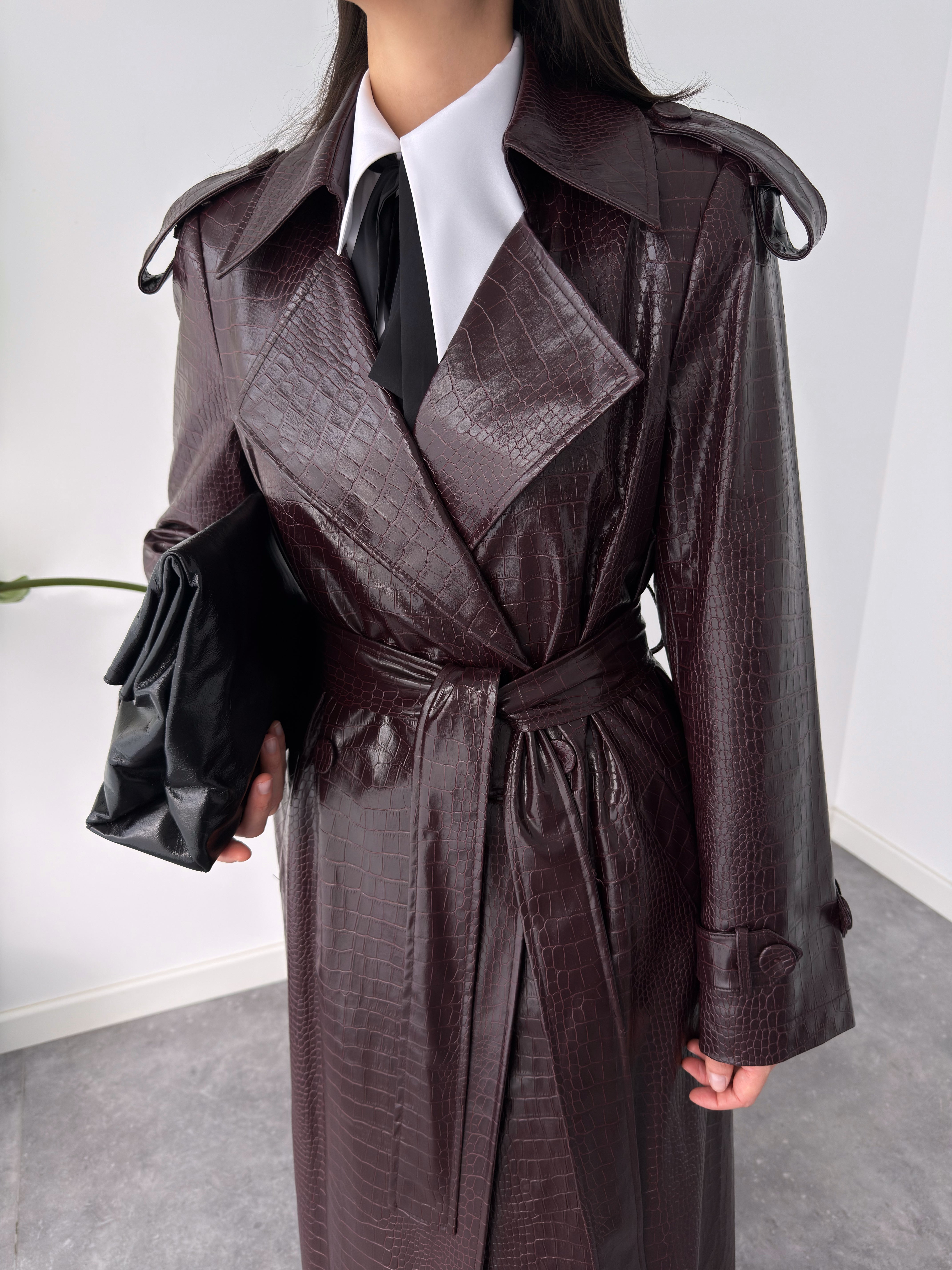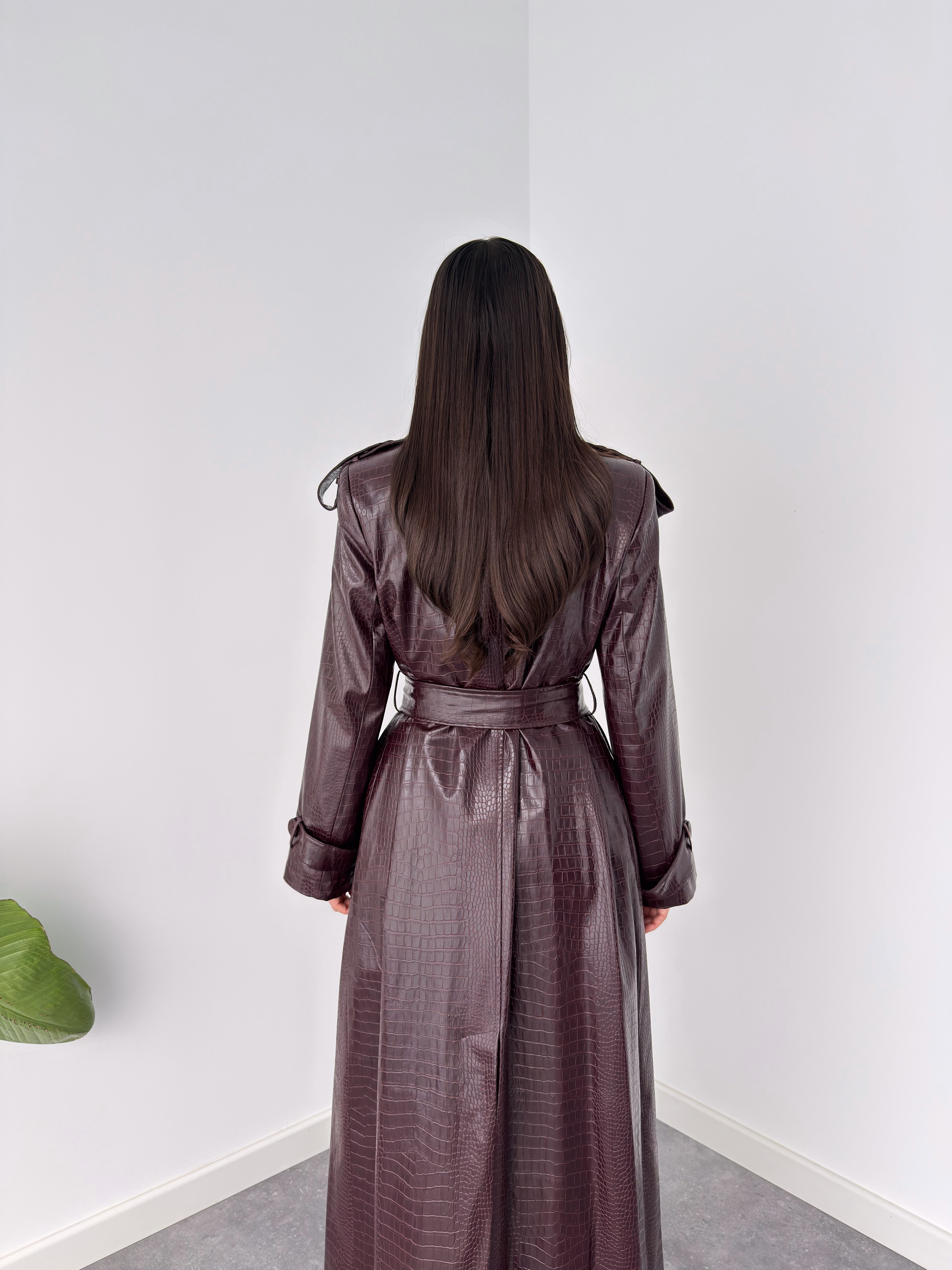 SUNİ DERİ KRUVAZE MODEL PİTON TRENÇKOT BORDO