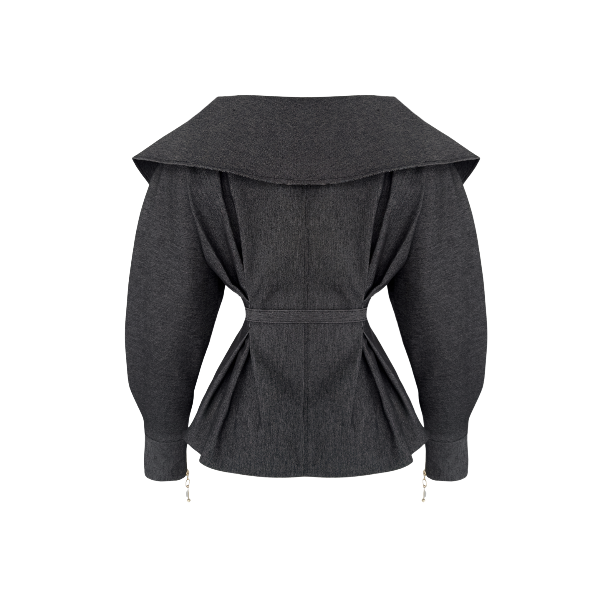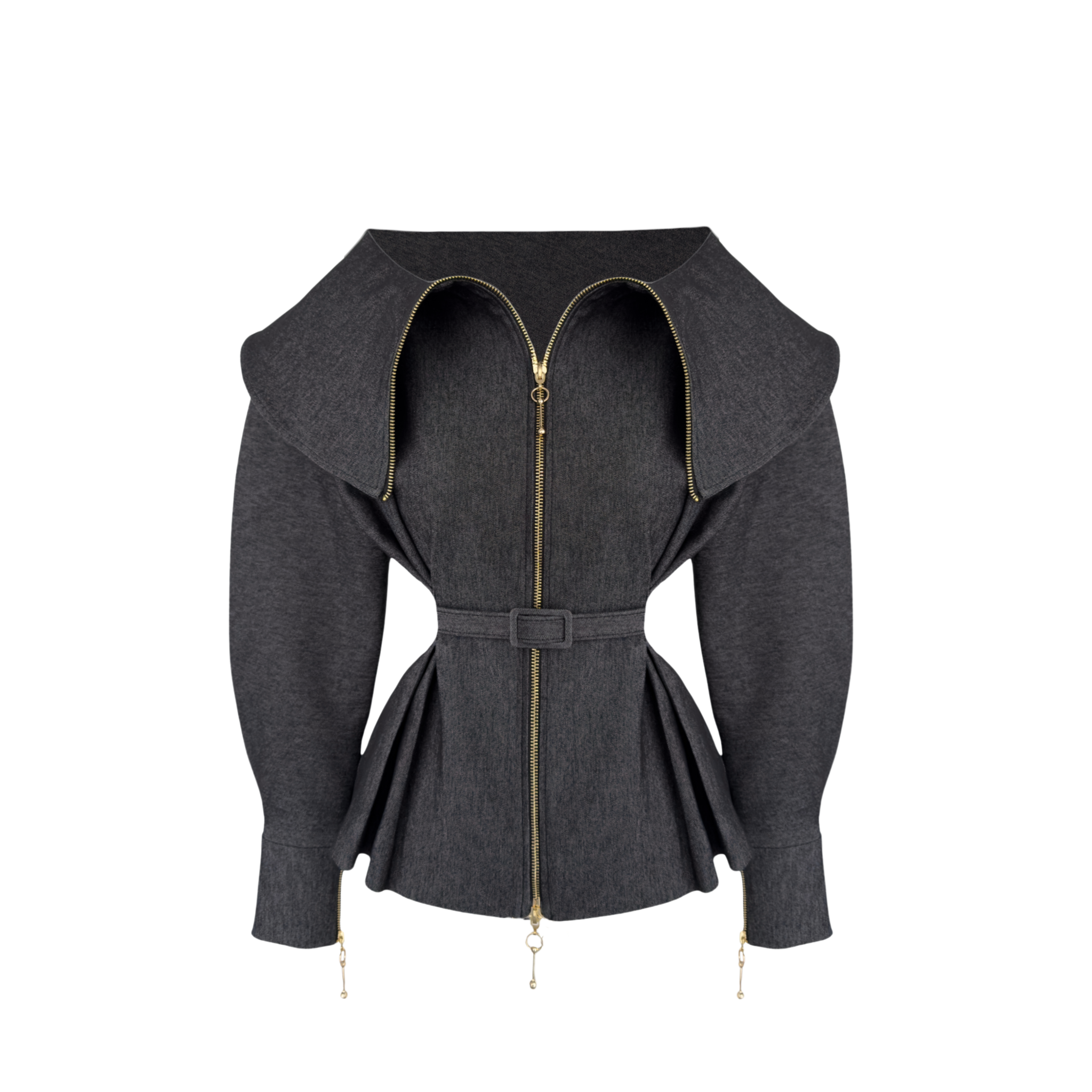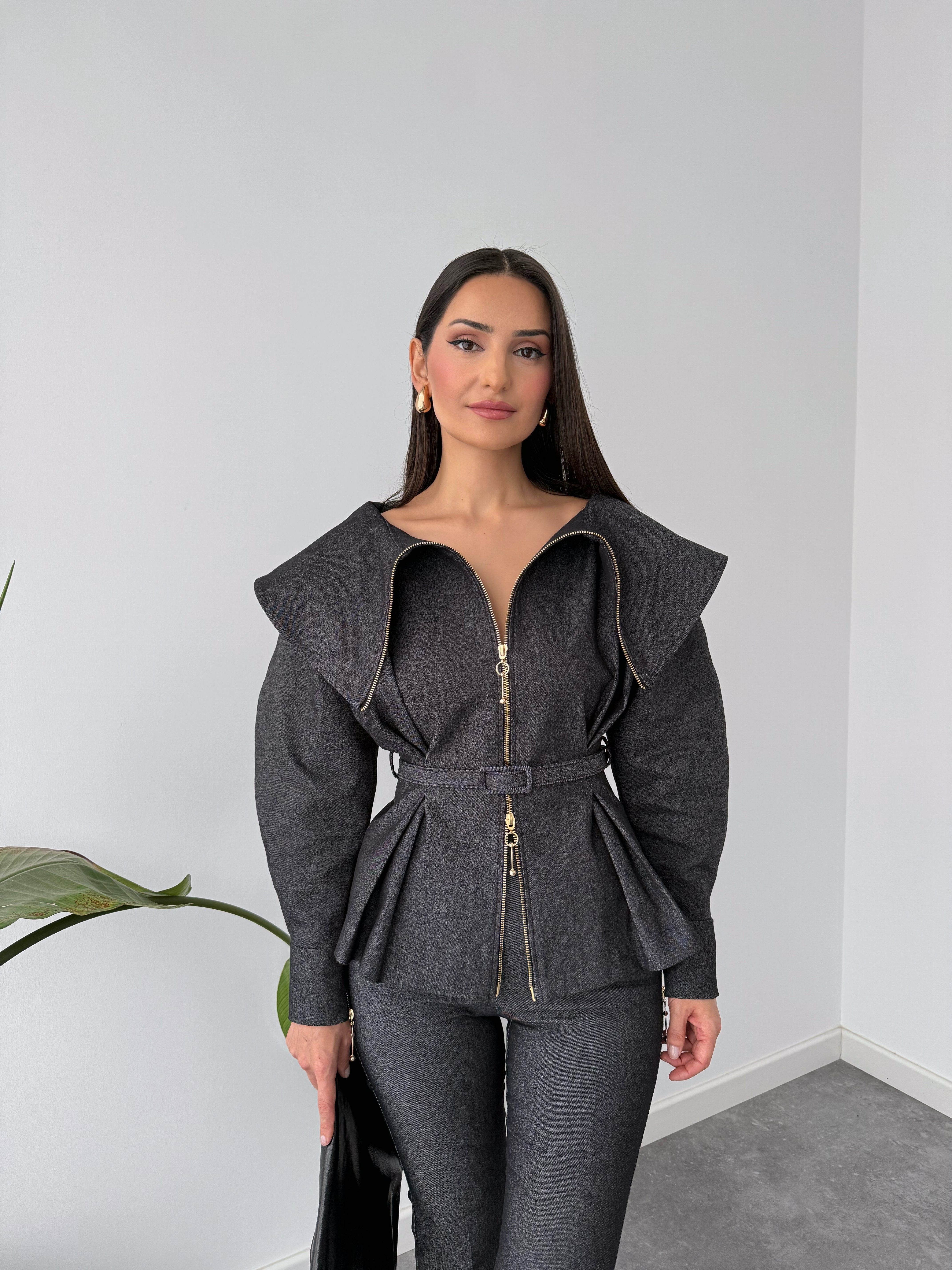 JANE YAKA DETAY FERMUARLI DENİM CEKET GRİ