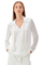 OMUZLARI AKSESUAR DETAYLI V YAKA BLUZ EKRU
