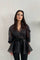 ORGANZE TÜL BALON KOL VOLANLI BLUZ SİYAH