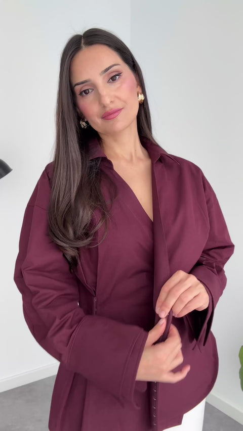 ASİMETRİK KAPAMA COTTON GÖMLEK BORDO