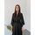 V YAKA BEL DETAY PAMUK SATEN ELBİSE SİYAH